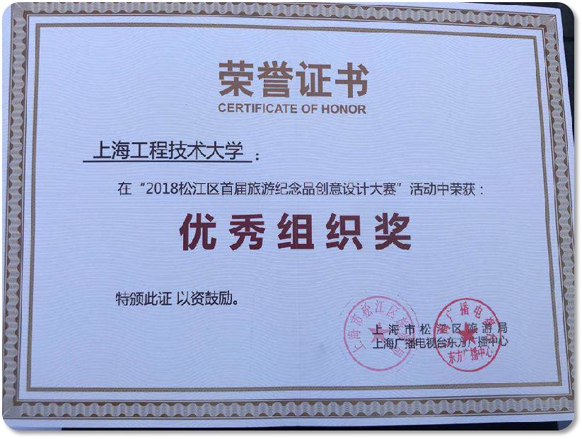 弘扬海派文化,承办松江区首届旅游纪念品创意设计大赛,荣获优秀组织奖,均取得良好效果。
