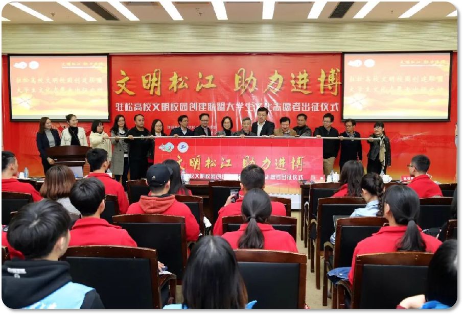 4月10日下午,上海市精神文明建设工作会议在友谊会堂召开。会上,我校获得首届“上海市文明校园”称号。 坚持学习贯彻宣传思想工作会议,参与城市精细化管理,践行社会主义核心价值观。 去年市精神文明办、团市委与申通地铁共同组织成立了“上海大学生地铁志愿服务联盟”,市文明办副主任姜鸣为联盟揭牌,联盟秘书处设在工程大,由首批8个优秀大学生志愿服务团队所在高校共同组成,已扩大至10家。 作为联盟秘书处单位,与团市委、申通地铁共同开展“助力进博会 时刻在行动”——上海大学生地铁志愿者服务训练营。 进博期间地铁志愿者们分批前往徐泾东站等11个重点大客流车站,在近200个超高流量志愿服务岗位上提供双语、引导、问询等服务工作,参与志愿服务600人次,为近50万名观众、旅客提供贴心服务。 坚持学习宣传贯彻党的十九大精神和习近平新时代中国特色社会主义思想,承办2018年上海市公益广告征集大赛启动仪式暨上海市公益广告论坛。坚持把积极培育和践行社会主义核心价值观、庆祝改革开放 40 年伟大成就、彰显上海城市精神、打造上海文化品牌作为公益广告宣传重要实践,充分发挥公益广告在培育和践行社会主义核心价值观、凝聚中国力量、传播中国文化等方面的重要作用。 另外,我校积极承办上海市大学生公益广告大赛优秀作品展,连续两年荣获优秀组织奖。 2018年,驻松高校文明校园创建联盟正式成立,我校被授予首任轮值理事长单位。联盟成立以来,区内各高校资源整合,不断推进文明校园创建。 在中共松江区委宣传部、区文明办和区文广局的指导下,弘扬志愿者文化,我校承办驻松高校文明校园创建联盟大学生文化志愿者出征仪式; 传承江南文化,承办第十二届上海朗诵艺术节开幕仪式;