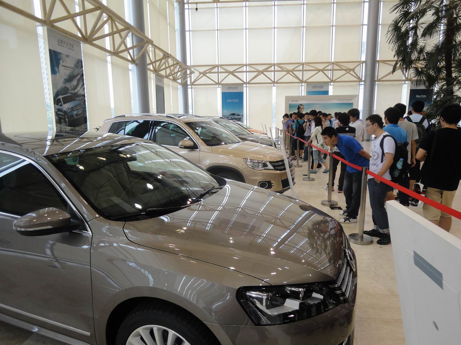 按照实习行程,同学们先到达了上海大众汽车公司汽车三厂进行参观。首先大家观看了介绍公司生产流水线与企业文化的视频,随后同学们在工作人员的指导下戴上护目镜,做好安全措施,乘坐观光小车进入车间。在那里同学们主要参观了机械手在1400多高温下进行激光焊接的过程以及汽车总装四大模块中的车门模块和底盘模块。