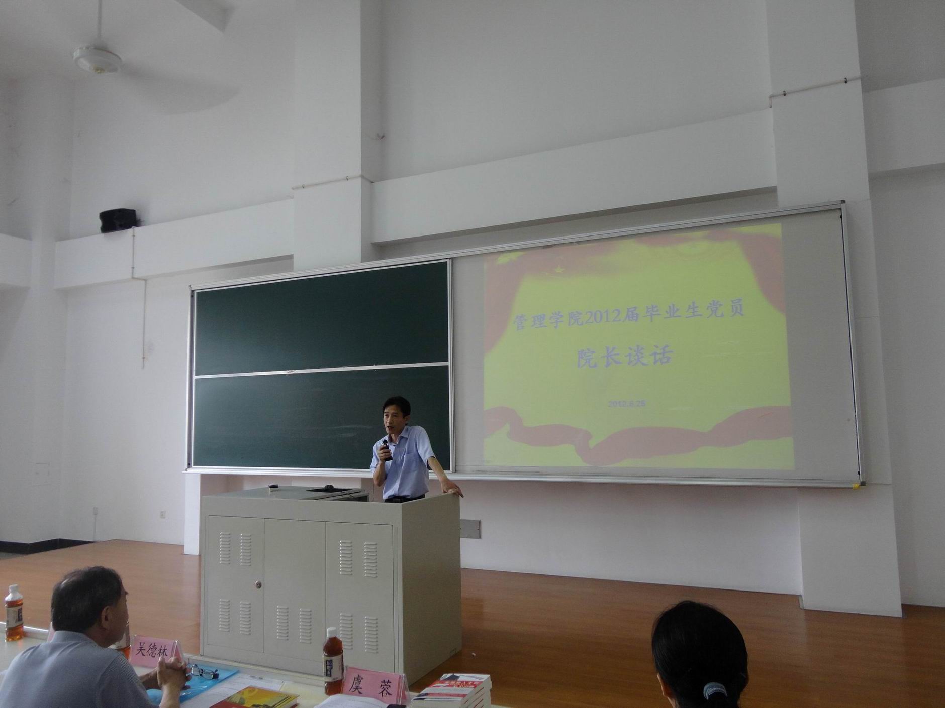 为了提高毕业生党员党性修养,促进毕业生党员文明离校, 6月25日中午,管理学院召开了全体毕业生党员大会,开展院长谈话活动。管理学院常务副院长吴忠、管理学院党委副书记虞蓉老师、组织员丁红娟老师、毕业生党支部书记牛兵老师参加了会议。