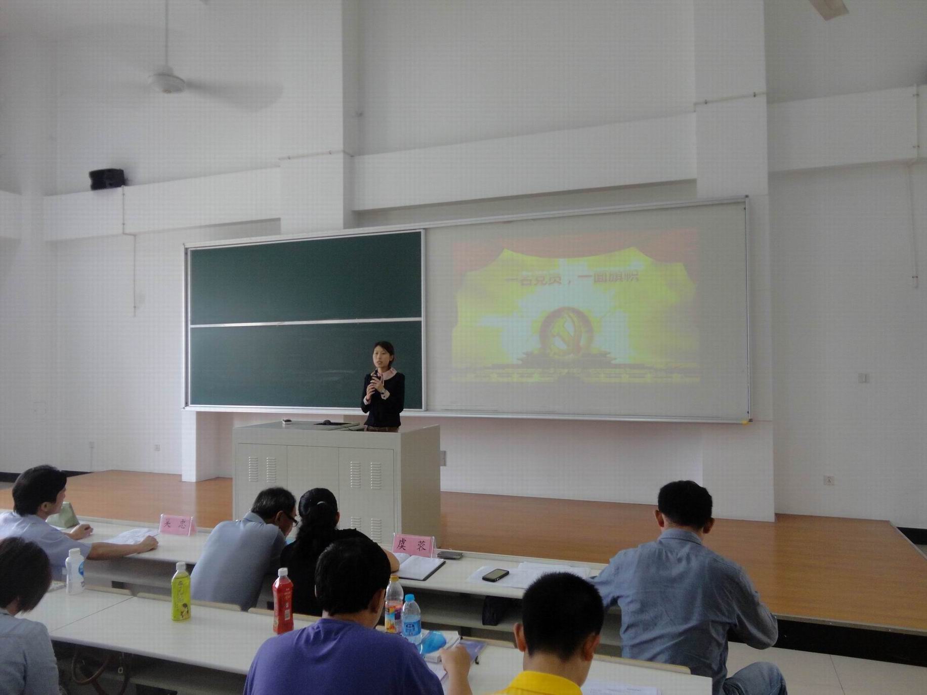 6月25日上午,管理学院毕业生在教学楼F120开展了一场特别的毕业生答辩会——“心系社会,奉献自我——管理学院2012届毕业生党员党性答辩会”。校党委组织部吴德林老师、管理学院常务副院长吴忠老师、管理学院党委副书记虞蓉老师以及毕业班党支部书记、组织员参加了此次答辩会。