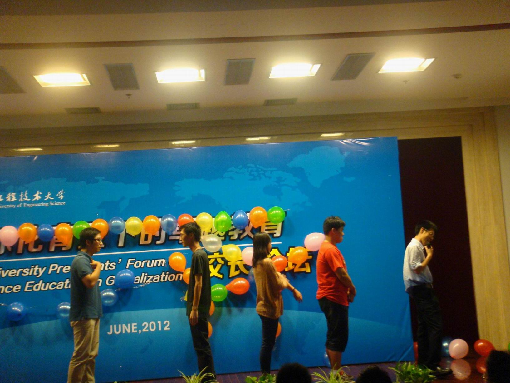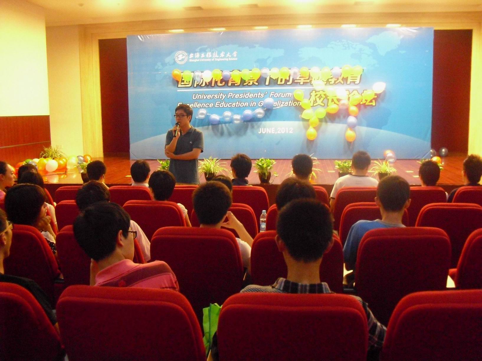 交流会在前分团委副书记余声铮的致辞中拉开了序幕。余声铮语重心长地对同学们说:“人生是一个很漫长的旅程,如何规划人生,如何体现自我,在大学的4年内能学到什么,要做什么,是大家需要思考的问题。”这些问题引起了同学们的深思。在之后的团学联老干部颁奖仪式中,各个富有创意的奖项以“身体夹气球”的颁奖方式给予颁发,在颁发“口若悬河奖”时,更是让在场观众捧腹大笑。在游戏环节中,林老师也亲自上阵,和同学们打成了一片。由毕业生代表安琪和方雨杰同学所领唱的上海话版情歌王,再一次把交流会现场推向了高潮。