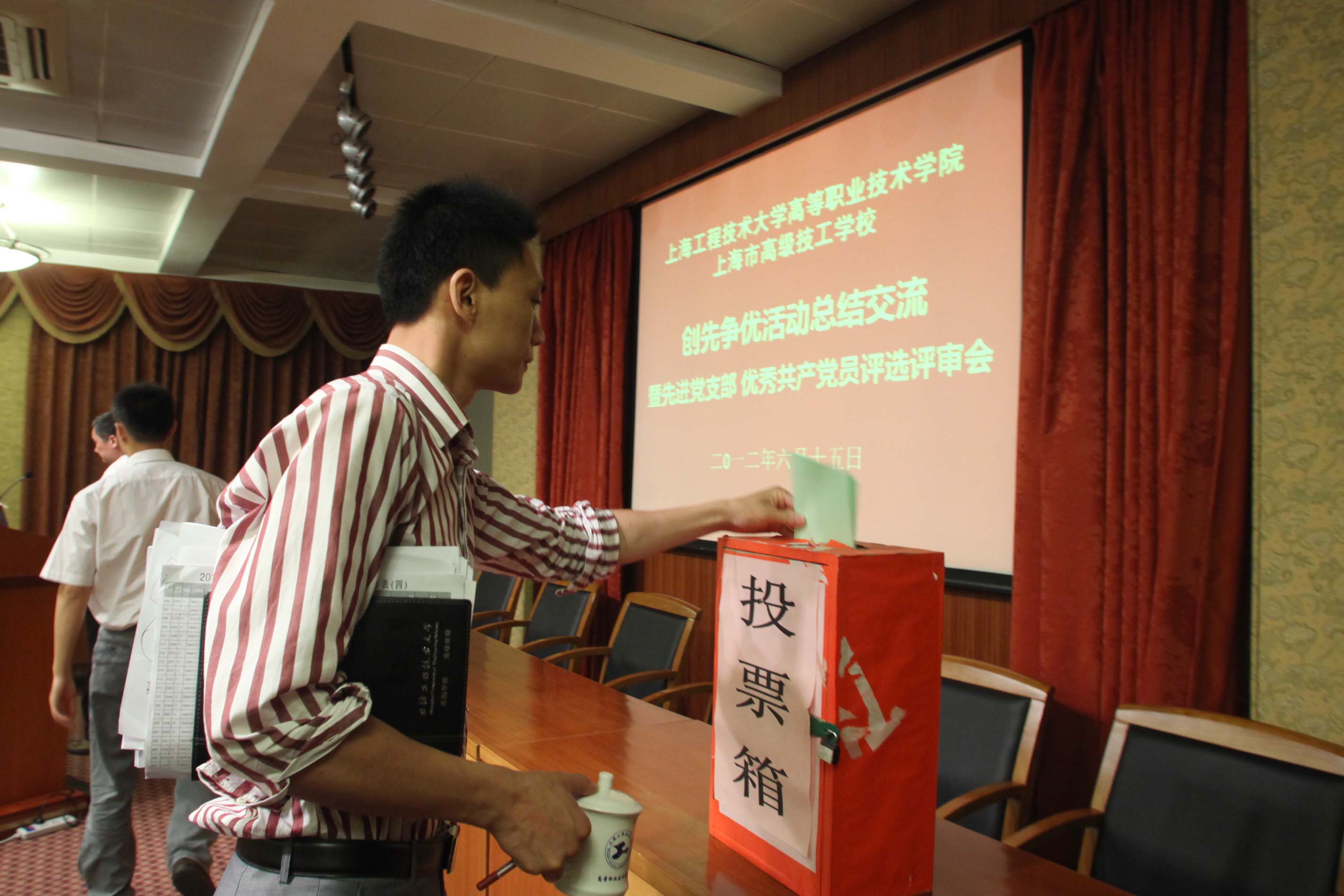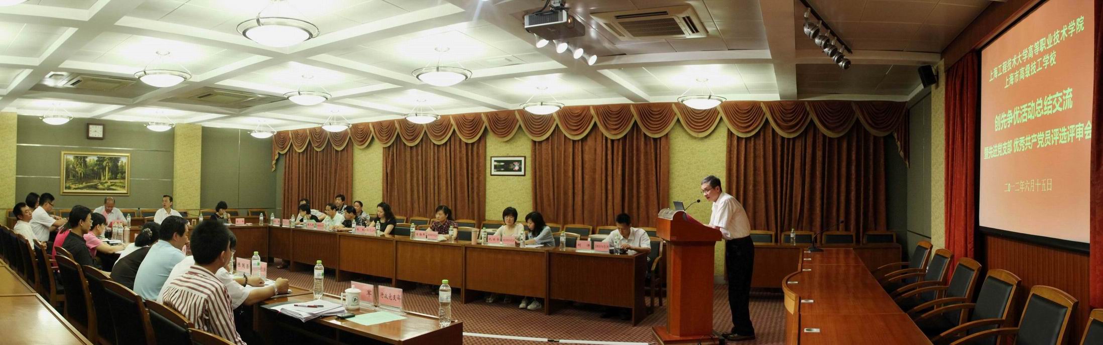 根据学校党委《关于开展上海工程技术大学创先争优专项表彰的通知》的精神,高职学院于6月15日上午召开了创先争优活动总结交流暨先进党支部、优秀共产党员评选评审会。会议由学院党委书记柳如荣主持,学院党委副书记、学院工会主席沈国平以及各党支部书记、委员参加了会议。