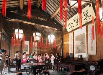 第二天上午大家参观游览了扬州个园,未入园门,只见修石依门,筱竹劲挺,两旁花台上石笋如春笋破土,缕缕阳光把稀疏竹影映射在园门的墙上,形成“个”字形的花纹图案,烘托着园门正中的“个园”匾额,微风乍起,枝叶摇曳,只见墙上“个”字形的花饰不断移动变换,美不胜收。