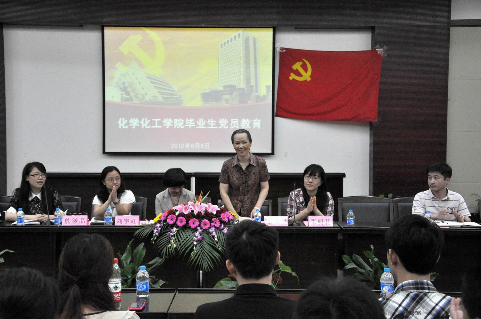 毕业在即,为了充分发挥学生党员干部的模范带头作用,增强毕业生党员的党性修养,确保广大毕业生安全、有序、文明地离校,维护学校正常的教学生活秩序,6月8日上午,化学化工学院党总支在图文信息中心第三报告厅举行了“立岗敬业,创先争优,争做优秀党员”为主题的2012届毕业生党员教育。参加会议的有学院党总支书记刘宇虹、学院二级关工委教师代表董义明、学院党总支副书记熊筱晶、毕业生党员代表张明莉以及各学生党支部书记和全体2012届毕业生党员。会议由学院组织员熊伟老师主持。