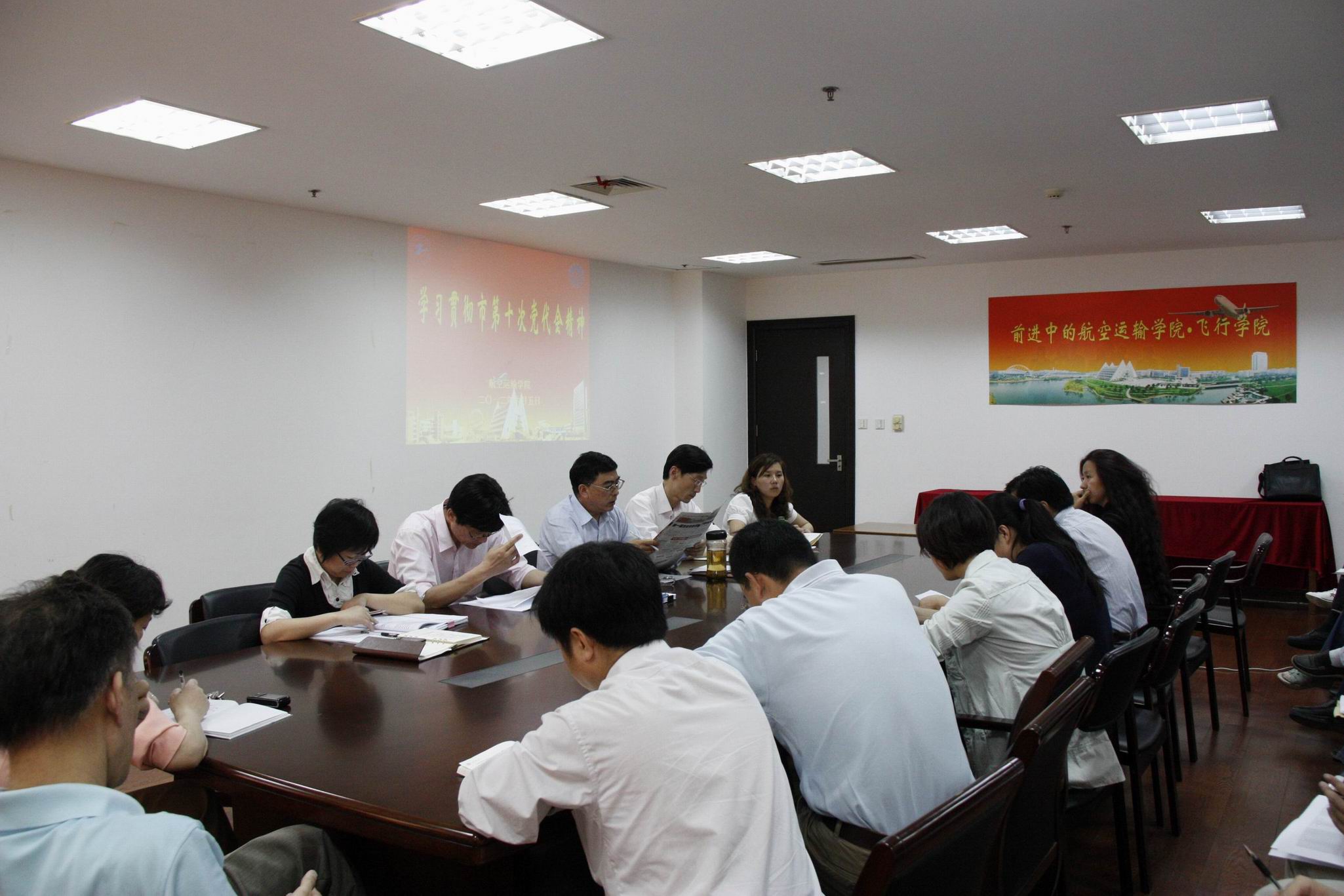 6月5 日下午,航空运输•飞行学院召开会议传达学习贯彻市第十次党代会精神,会议由院党总支书记卫国林主持,学院全体教师参加了此次会议。