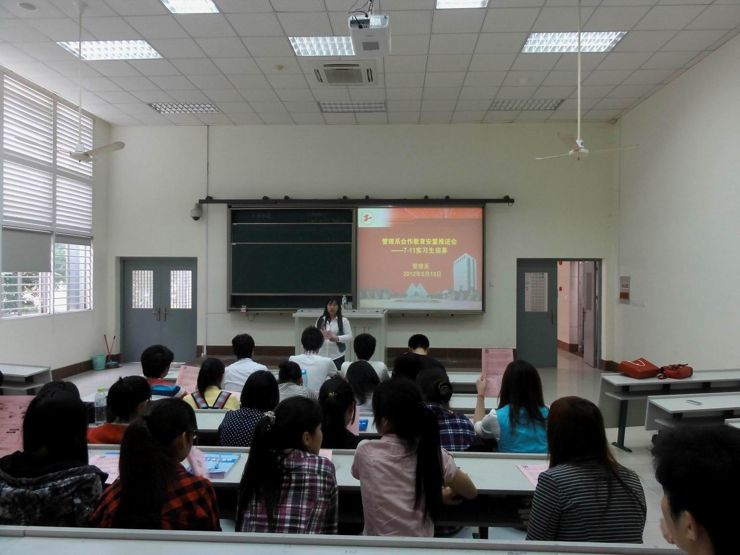 5月31日下午,高职学院管理系在综合楼108召开了产学合作教育安置推进会。此次安置推进会在学院管理系支部书记刘春娣的关心和积极推动下,由台湾统一超商(上海)便利有限公司(“7-11”)开展了专题实习生招募宣讲会和相关面试。武学慧老师、刘洋老师和大一、大二相关同学参加了本次招募会。本次招募会由武学慧老师主持。