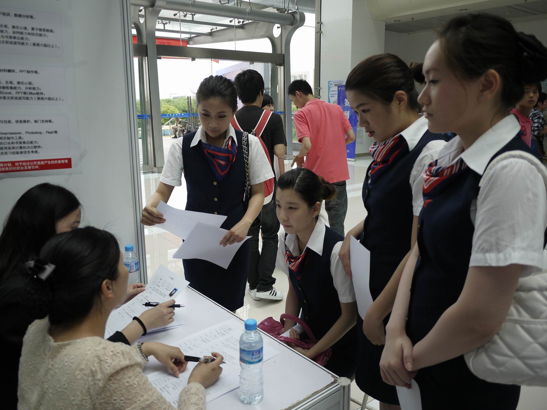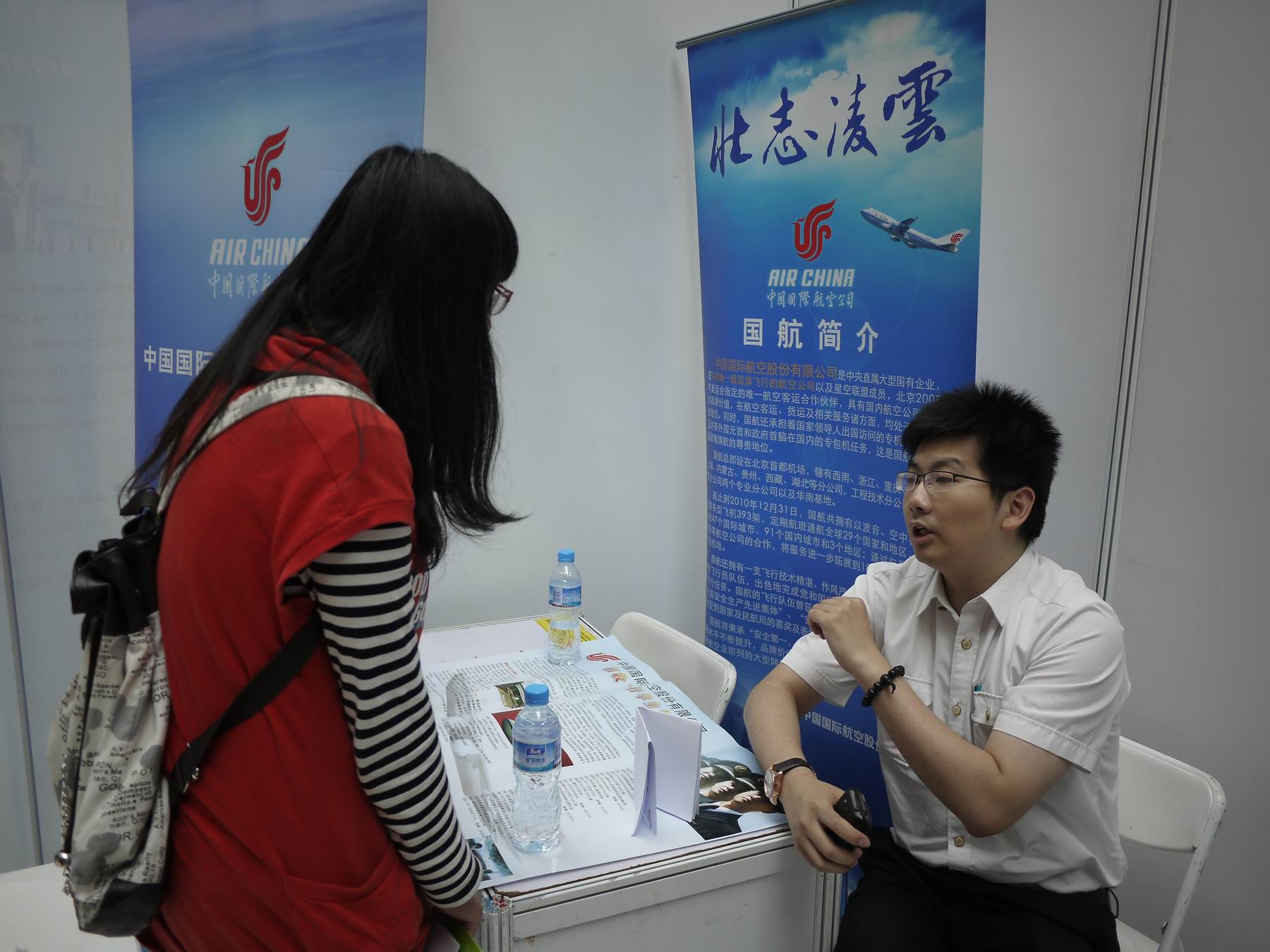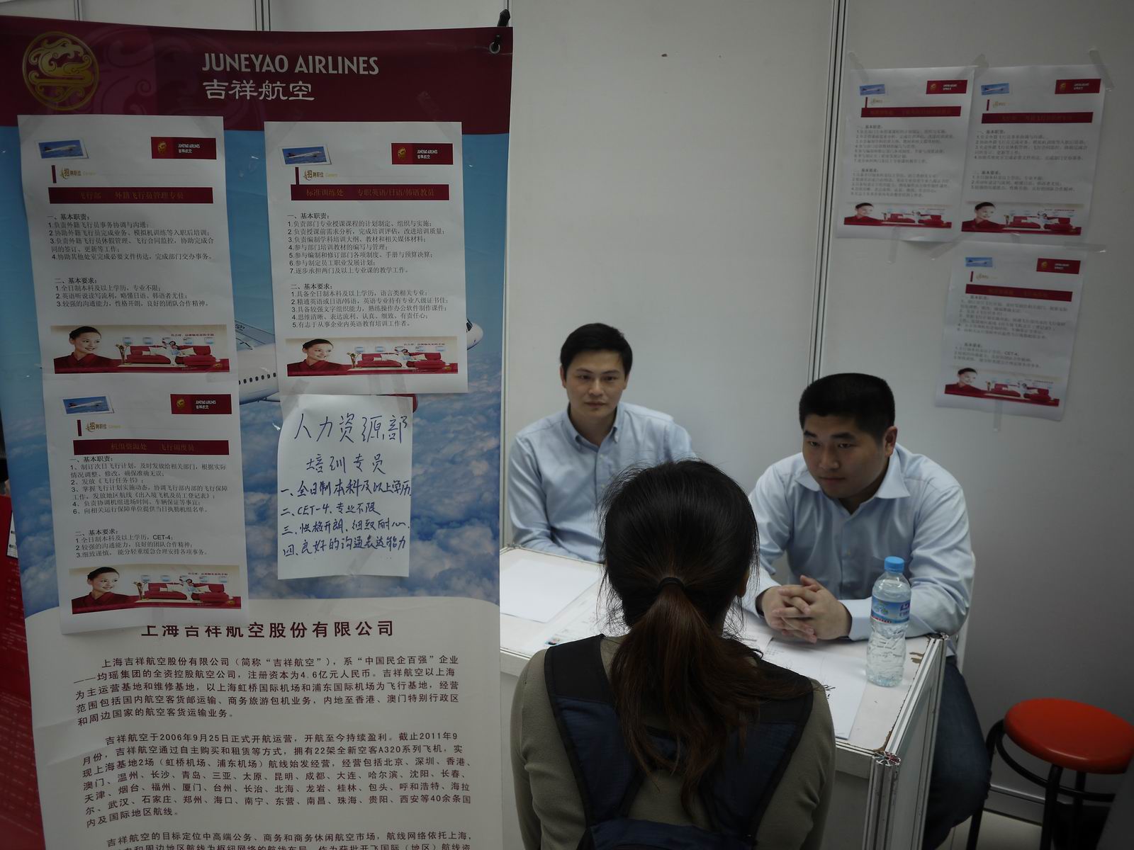 上海工程技术大学丁晓东校长、孙培雷副校长及学生工作处(部)王明复处长到航空运输·飞行学院单位区域与企业代表进行了交流,并对企业给予学校产学合作教育的支持表示感谢。随后七家企业对学生进行了面试,面试过程中,上海吉祥航空股份有限公司的徐经理表示本次双向见面会已有50多名同学面试了吉祥航空公司,其中36位是大一学生。他们在与学生的交流过程中,学生普遍表现出超前的就业意识。这些同学在大一的时候就在为自己今后的职业规划做准备,这也反映出学院在产学合作及就业指导工作方面做了很多相关工作。”