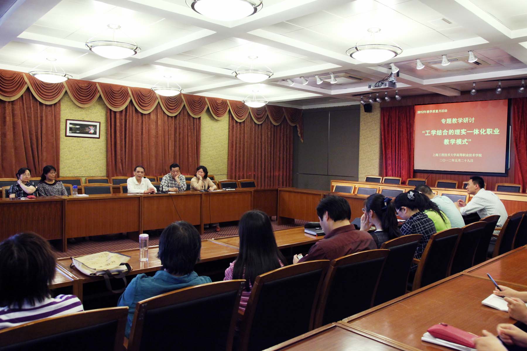 为进一步提升教研室教研活动的内涵,丰富教研活动的主题与内容,拓展教研室主任与专业教师对职业教育教学法的理解,5月29日下午,高职学院开展了以“工学结合的理实一体化职业教学模式”为主题的专题教学研讨活动,学院各教研室主任、专业骨干教师、系部教学管理人员等近30人参加了研讨,研讨活动特邀了具有丰富一体化教学模式理论研究与实践经验的李春明老师和张孝三老师参加,研讨活动由教务科科长林春老师主持。