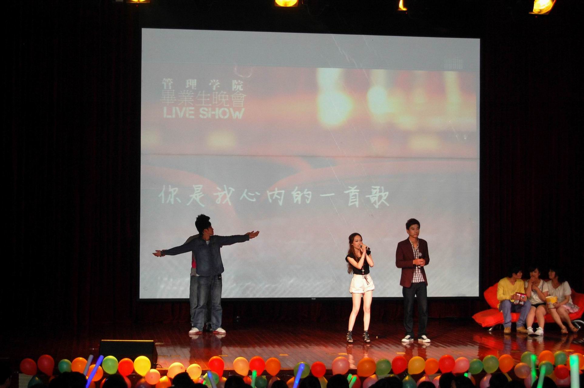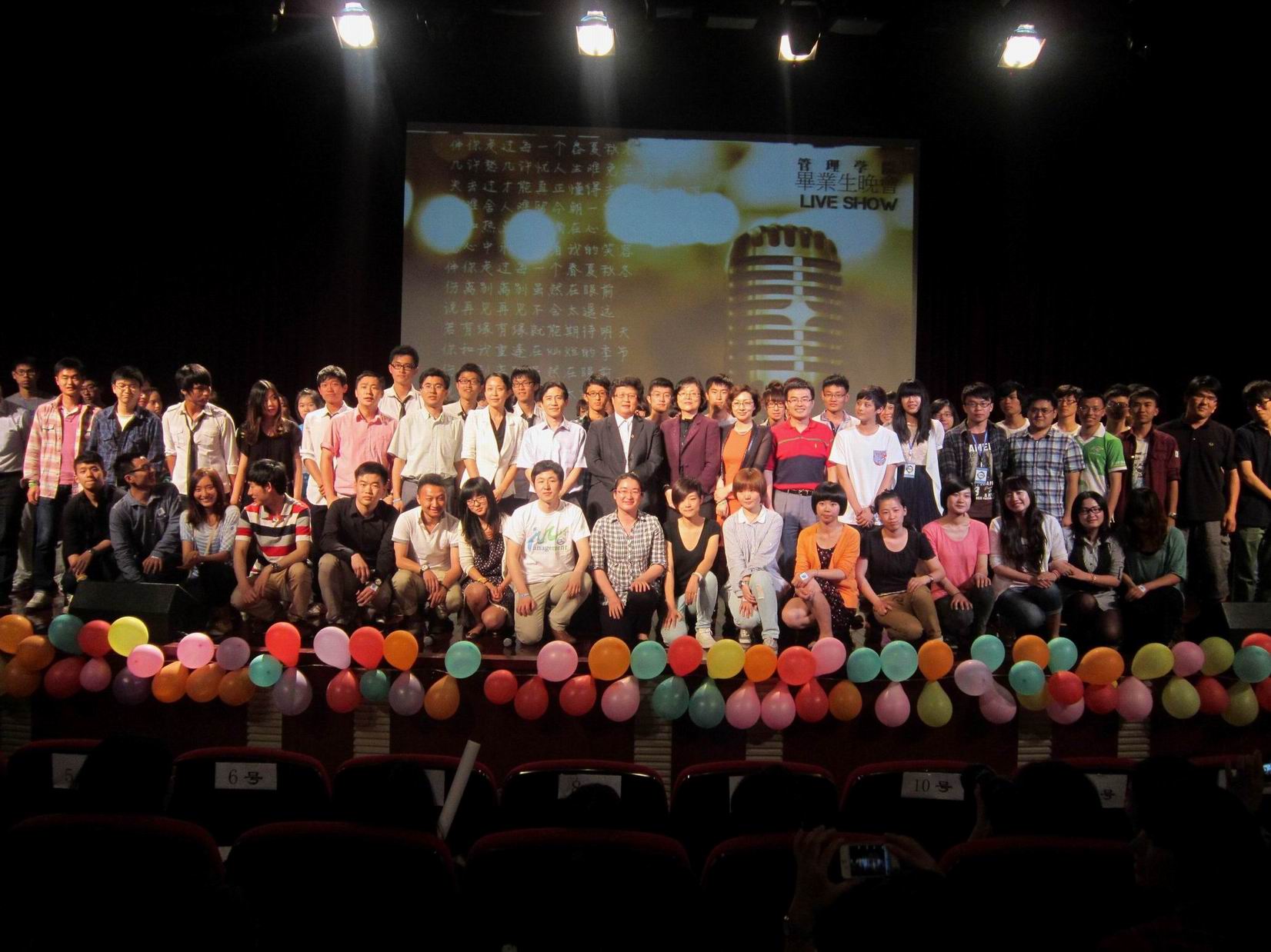 整场晚会以一场话剧连贯始终,从大一至大四四幕,回放了08级共同的四年回忆。晚会节目以一段清新的短片拉开序幕。随后,回顾大学四年时光的话剧《礼物》的开场部分,描述了前不久拍毕业照的情景,其贴近生活的对白和甄�痔宓惹纹さ挠糜铮�引来了毕业生们一阵又一阵的欢笑和掌声。随后的大一篇章中,毕业生沈超献上了一曲《那些年》,将晚会的气氛进一步推向热烈。跟随着他深情款款的演唱,台下观众挥舞荧光棒,志宏堂成为了五彩斑斓的海洋。接着,10级孙思涵和薛家伦同学带来了《吐槽歌》,表现的是大一那年,用幽默的调侃吐槽新鲜陌生的大学生活的他们,展现出大学生活力四射,乐观阳光的一面。而后是代表成长的大二、大三部分。10级国贸班酷炫的集体舞,舞蹈团动感的《世博青春》,带领毕业生们回到他们共同经历过的点滴中。此时,离别的不舍悄然萦绕在毕业生心中。最后的大四部分,晚会在大家共同合唱的一曲《朋友》中圆满落下帷幕。