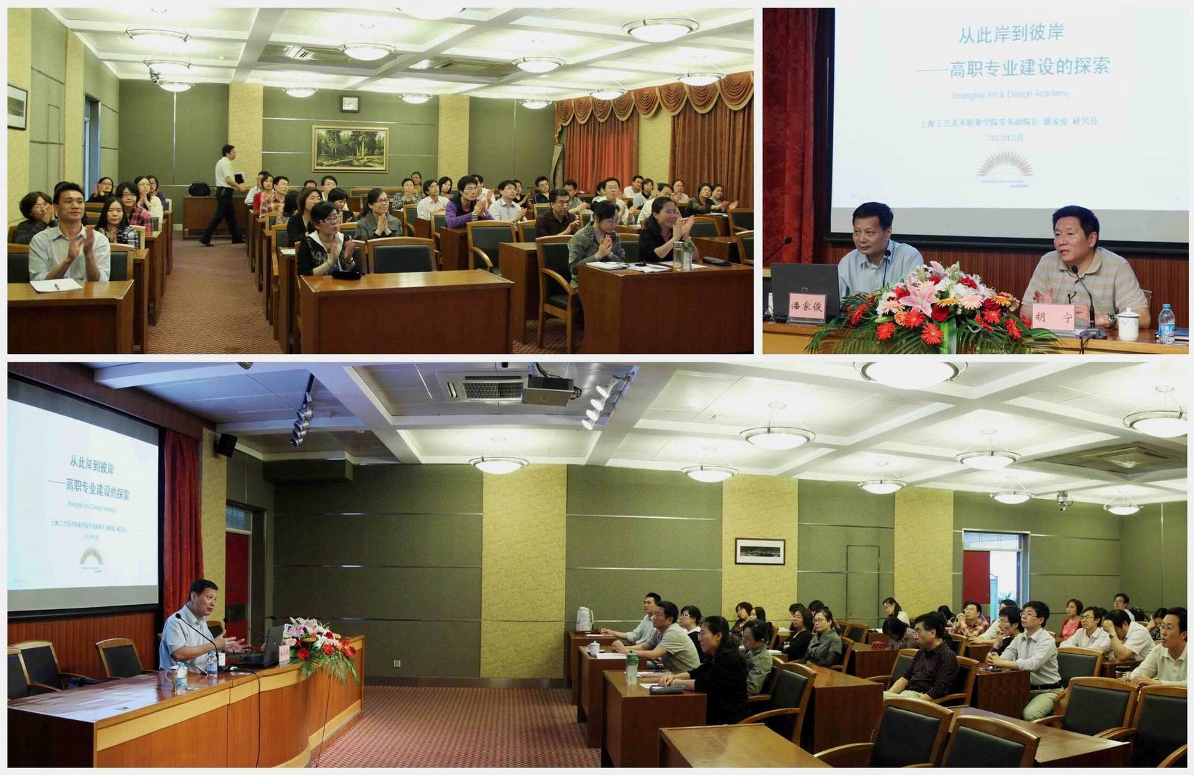 5月22日,高职学院2012年教学质量月系列活动之“职教讲坛”在综合楼九楼第二报告厅举行,上海工艺美术职业学院常务副院长潘家俊研究员以“从此岸到彼岸——高职专业建设的探索”为题,以上海工艺美术职业学院国家示范性高职院校建设及工艺设计专业建设为剖析案例,全面阐述了上海工艺美术职业学院在专业建设方面的模式、方法与成效。高职学院副院长胡宁教授,教务科、各系部负责人,教研室主任、专业骨干教师等50余人聆听了讲座。