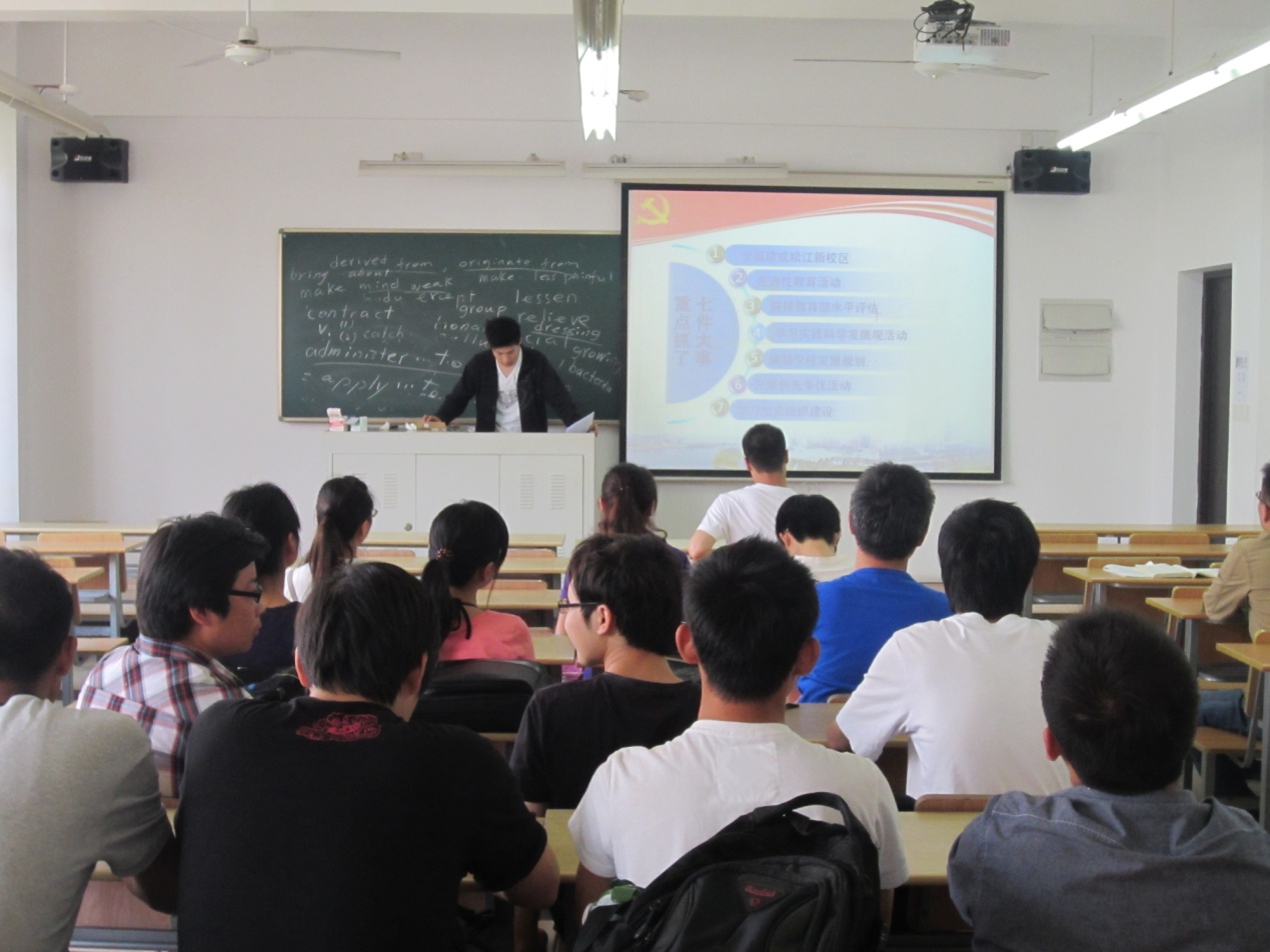 5月18日上午,材料工程学院全体研究生在教学楼A310召开大会,认真听取参加校第二次党代会的研究生苌文龙同学传达党代会精神。
