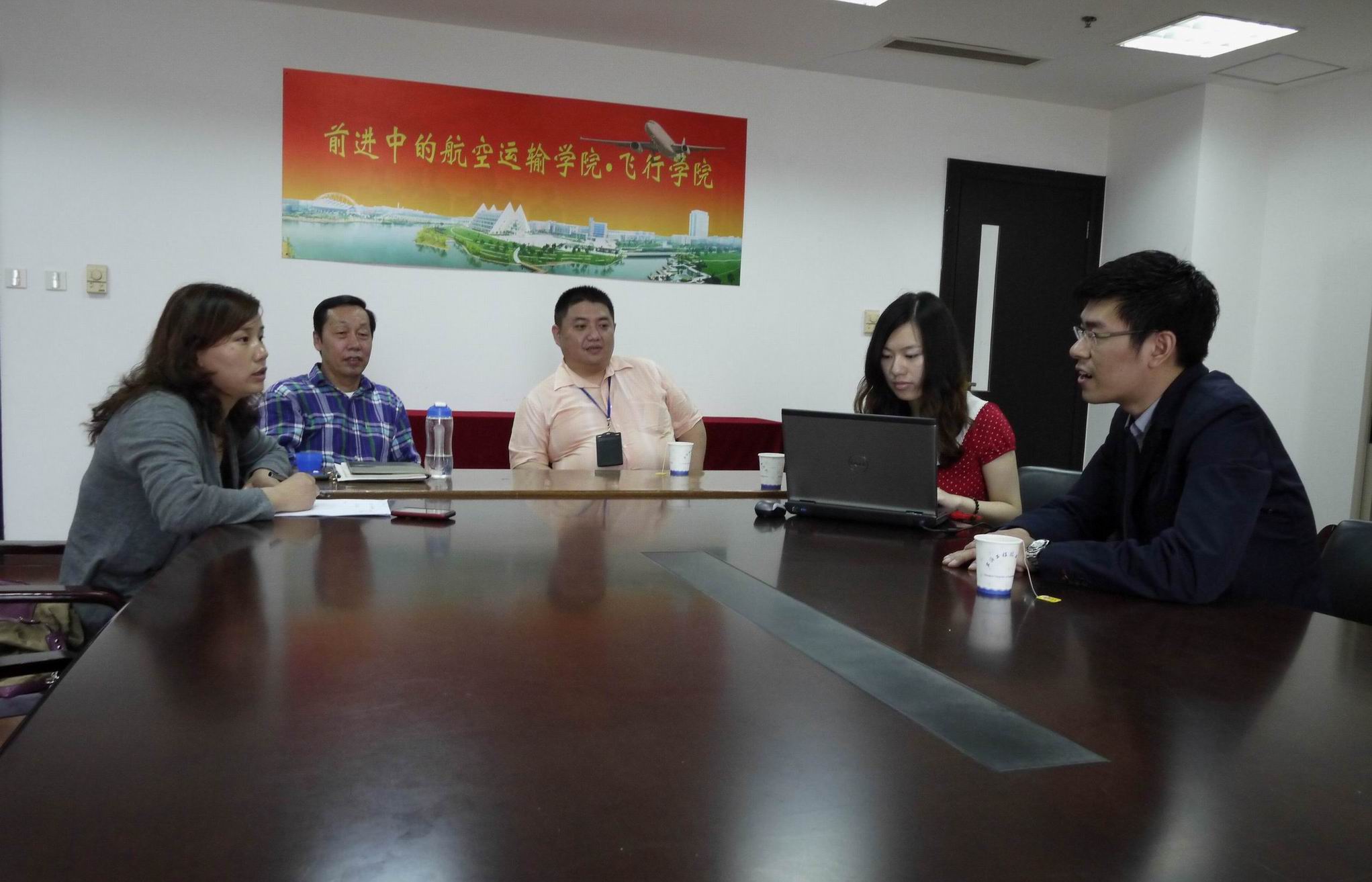 5月15日,航空运输•飞行学院与上海波音公司在学院会议室就校企合作事宜展开会谈。出席会议的有航空运输•飞行学院副院长陆惠忠老师,党总支副书记周慧艳老师,上海波音公司人力资源部员工关系主管许经理、招聘部薛经理等。波音公司薛经理向学院介绍了公司基本情况及长期发展目标。之后陆院长向波音公司介绍了我院专业设置及学生基本情况。