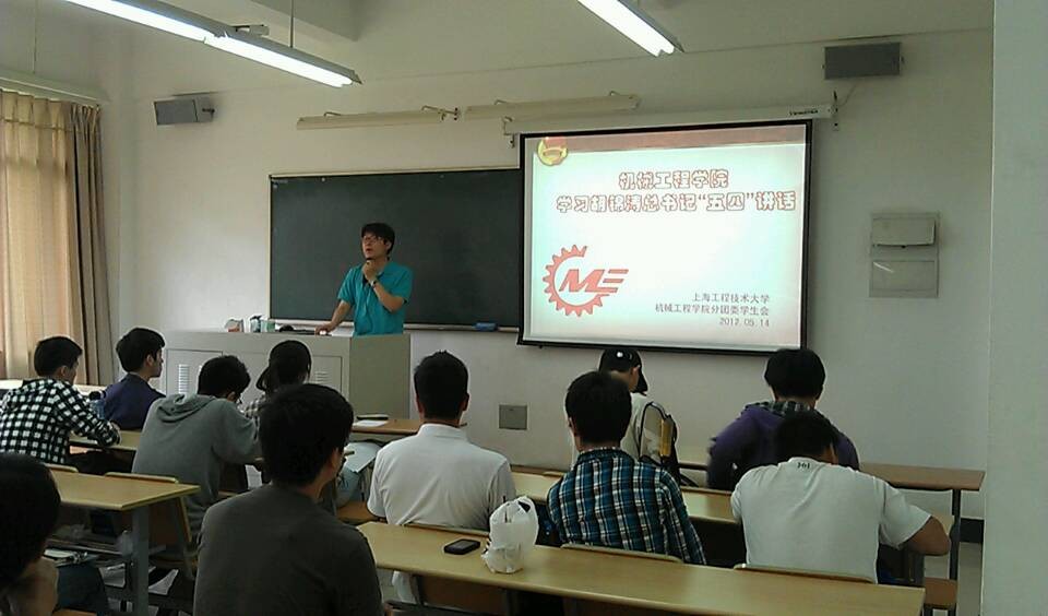 5月15日中午12:30,机械工程学院分团委开展了“学习胡锦涛总书记五四讲话精神”为主题的专题团组织生活。此次组织生活由学院分团委书记王雁老师主持,各团支部书记、学生会分团委的学生干部出席。