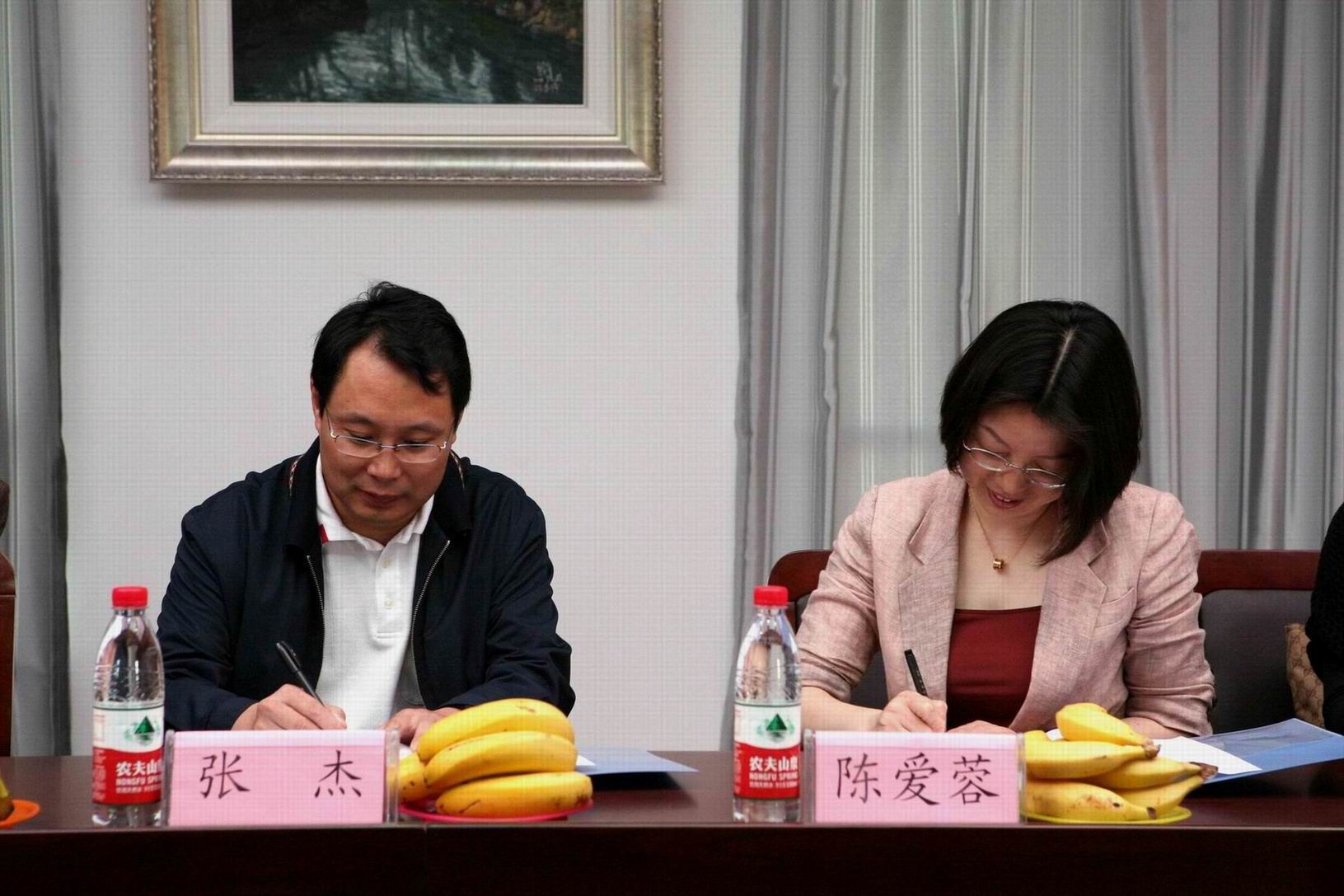 在双方愉快的交流后,张杰院长与上海莘莘学子创业投资有限公司陈爱蓉总经理正式在合约上签字。彼此希望建立友好长久的合作关系,有效促进校企间的互惠双赢,也为上海市企业文化建设各尽一份力量。