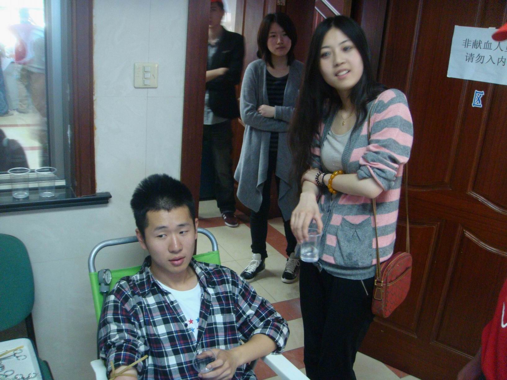 到达献血站后,大家便开始忙碌起来。志愿者们引导献血的同学进行体检,献血工作。在参加献血的同学中,记者发现了来自我院�t莺礼仪队的同学,几位面带微笑的“小空乘”也光荣的伸出了她们的手。当记者向她们问好、交谈时,礼仪队的姑娘们微笑着表示,能为需要帮助的人们献出自己的一点爱心,她们感到十分的激动与开心。献血过后不久,几位礼仪队的姑娘们并没有离开,她们主动要求、自觉承担起了献血服务志愿者的工作,协同我院大志部的志愿者们一起为参与献血同学们提供了搀扶,并为每一位同学献上一杯热热的牛奶和饼干。