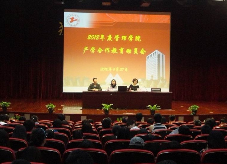 4月27日下午,管理学院在志宏堂召开2012年度产学合作教育动员会。会议由管理学院党委副书记虞蓉老师主持,管理学院副院长邱羚老师出席了此次会议,大一全体学生参加。