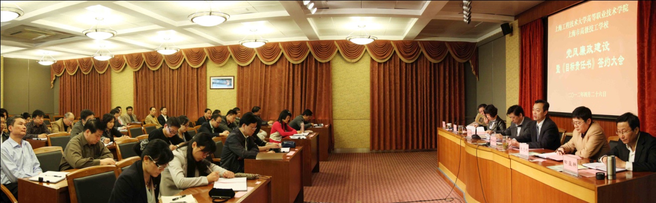 4月26日上午,高职学院2012年党风廉政建设大会暨《目标责任书》签约大会在综合楼9楼会议室召开,院长刘启中、党委书记柳如荣、党委副书记李军、校财务处副处长、学院财务总监张志刚、副院长胡宁、田盈耕等院领导出席会议,学院全体中层干部参加会议,会议由刘启中院长主持。