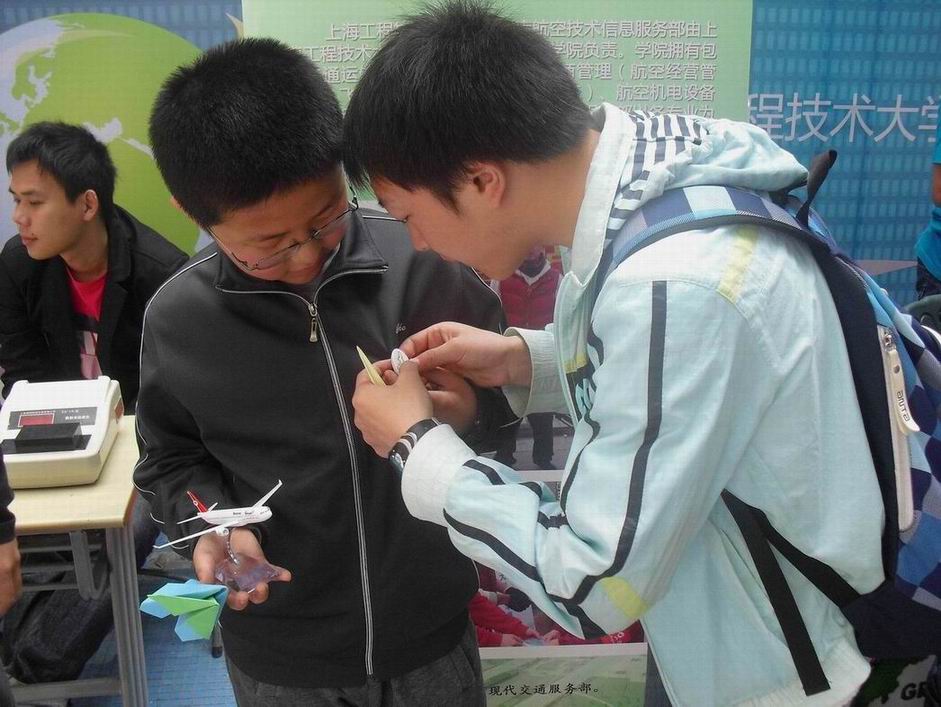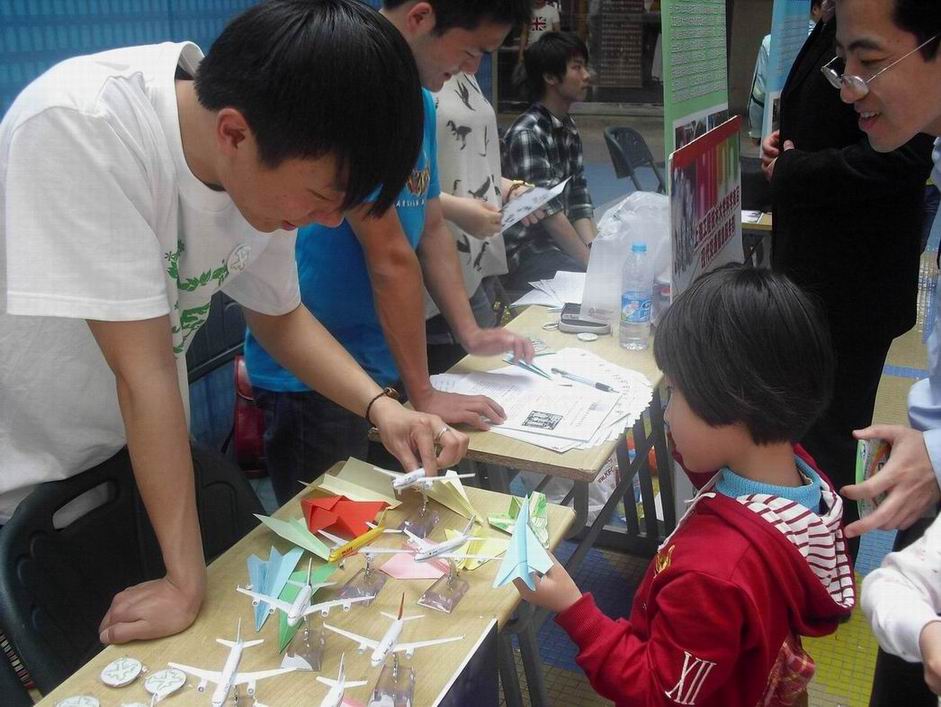 中午12:30活动正式拉开帷幕。志愿者们以各自的专业知识为依托,向路过的民众介绍了基础航空新能源知识,让大家感受航空业的魅力。我院展台上的10架飞机模型引起了路人们的好奇心,纷纷前来咨询有关航空环保、航空信息以及航空新能源等小知识。活动中“放飞祝愿”的环节让不少民众在我院的展台前停下了脚步,他们在志愿者的指导下,将用于宣传的纸张再度利用,折成纸飞机。一架架“飞机”带着大家对环境保护的信念与对“地球”这个人们赖以生存家园的美好祝愿,在我院的展台前飞翔。活动最后,在大众评委的评定下,评选出了“飞行时间最长”、“飞行距离最远”以及“最有创意作品”等几个奖项,航空运输•飞行学院分团委书记林小希老师为获奖选手颁发飞机模型作为奖励,以此激励大家为今后的环保事业做出自己的贡献。