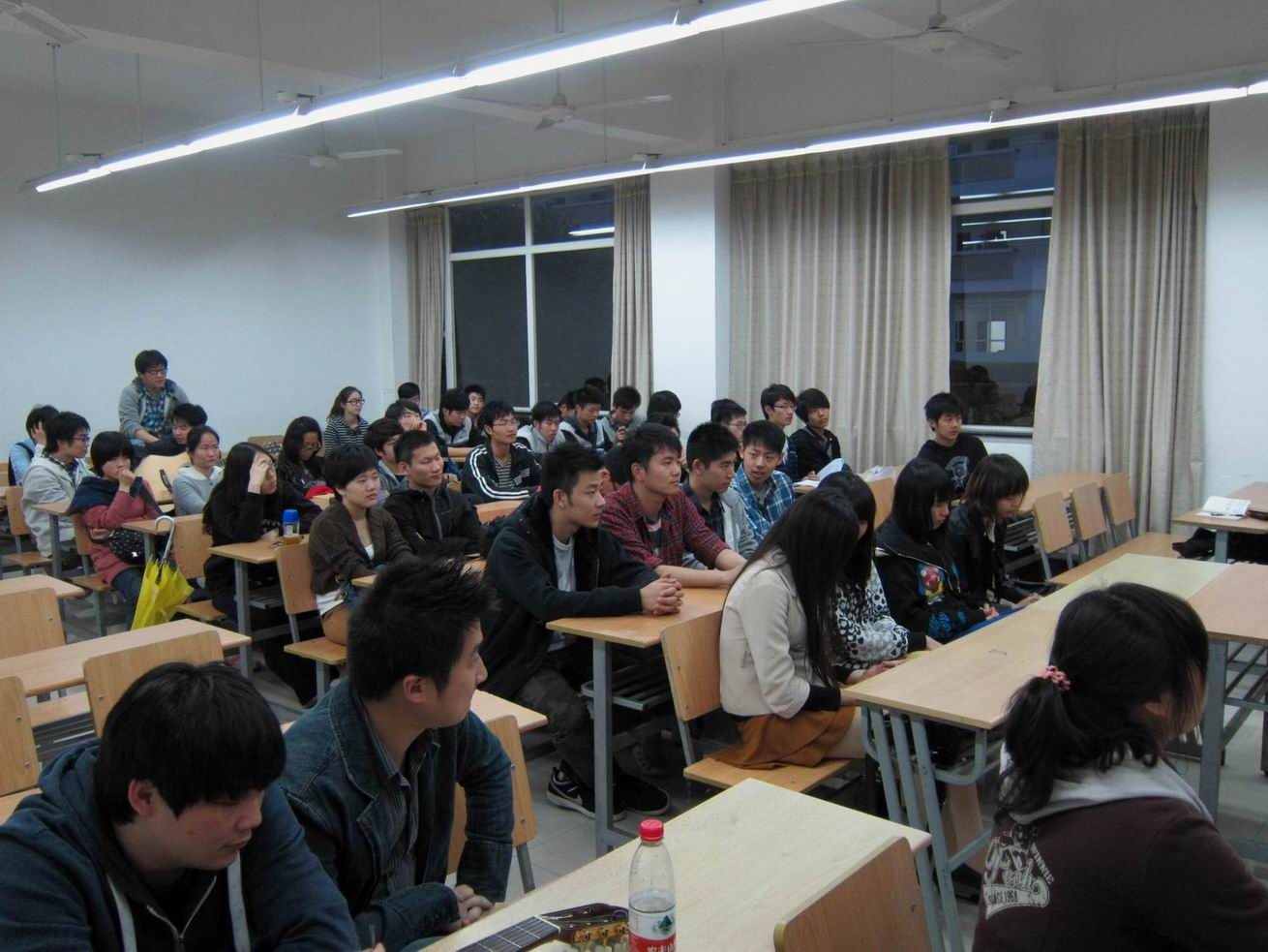 在经过文艺部部长刘晓璇同学的简单介绍后,吴平雷老师上台为同学们弹奏了一曲罗兰·迪安斯的《20封信》。吴老师手指间弹出的音符和节奏瞬间感染了在场的同学们。随后,张骞老师以古典与现代吉他演奏对比的方式为主线,为同学们讲解了古典吉他的发展历史,吴平雷、谭顺荣老师则配合着张骞老师进行现场弹奏。一首首经典、一段段熟悉的旋律让同学们沉浸其中,同学们仔细地聆听着,感受着音乐的神奇魅力。在活动的尾声,文艺部特别安排了问答环节,解决了“吉他爱好者们”心中的疑问。