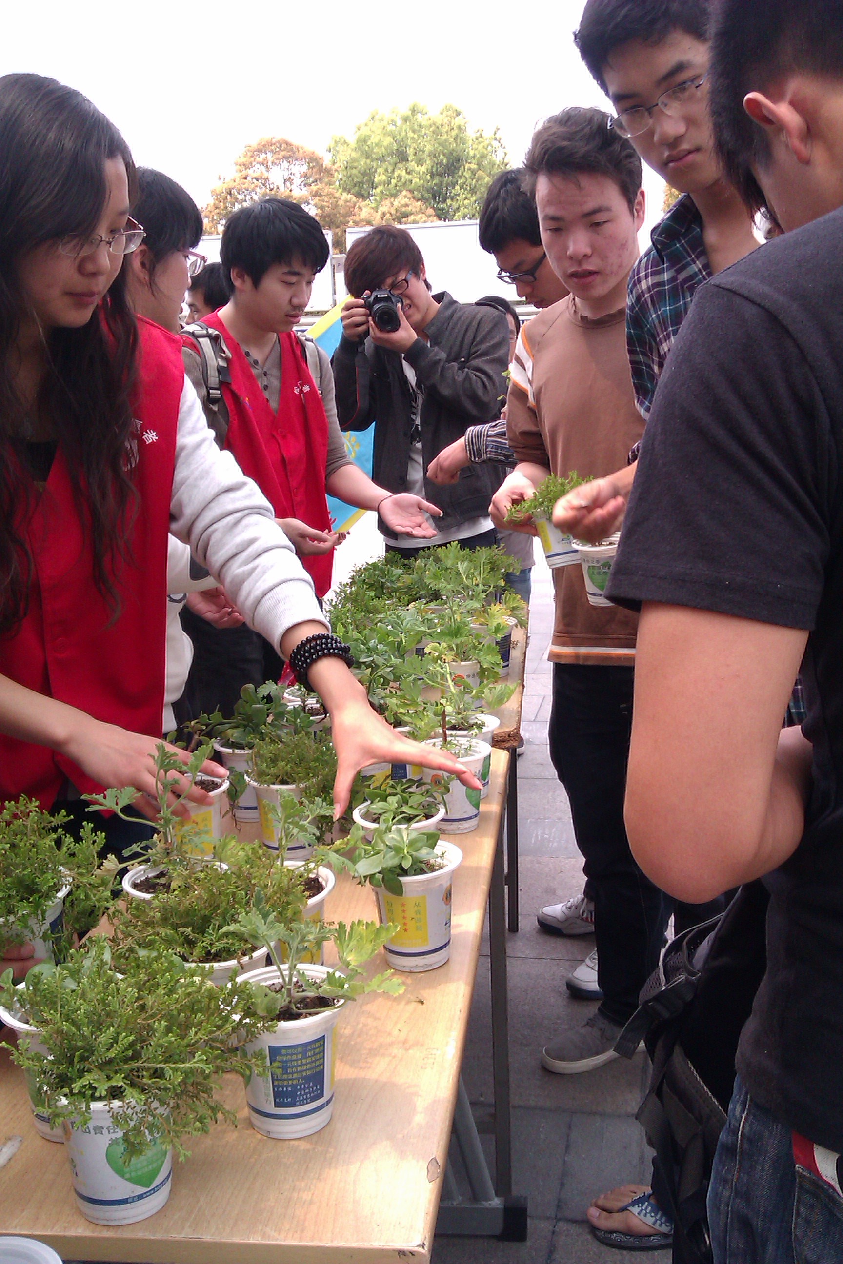4月10日中午,由牵牵公益及中国狮子联会主办、管理学院分团委学生会志愿者部承办的“校园点绿”慈善活动在大食堂如火如荼地开展。本次活动主题为“献爱心,公益一元钱买盆栽”,由上海市农林职业技术学院提供技术支持。