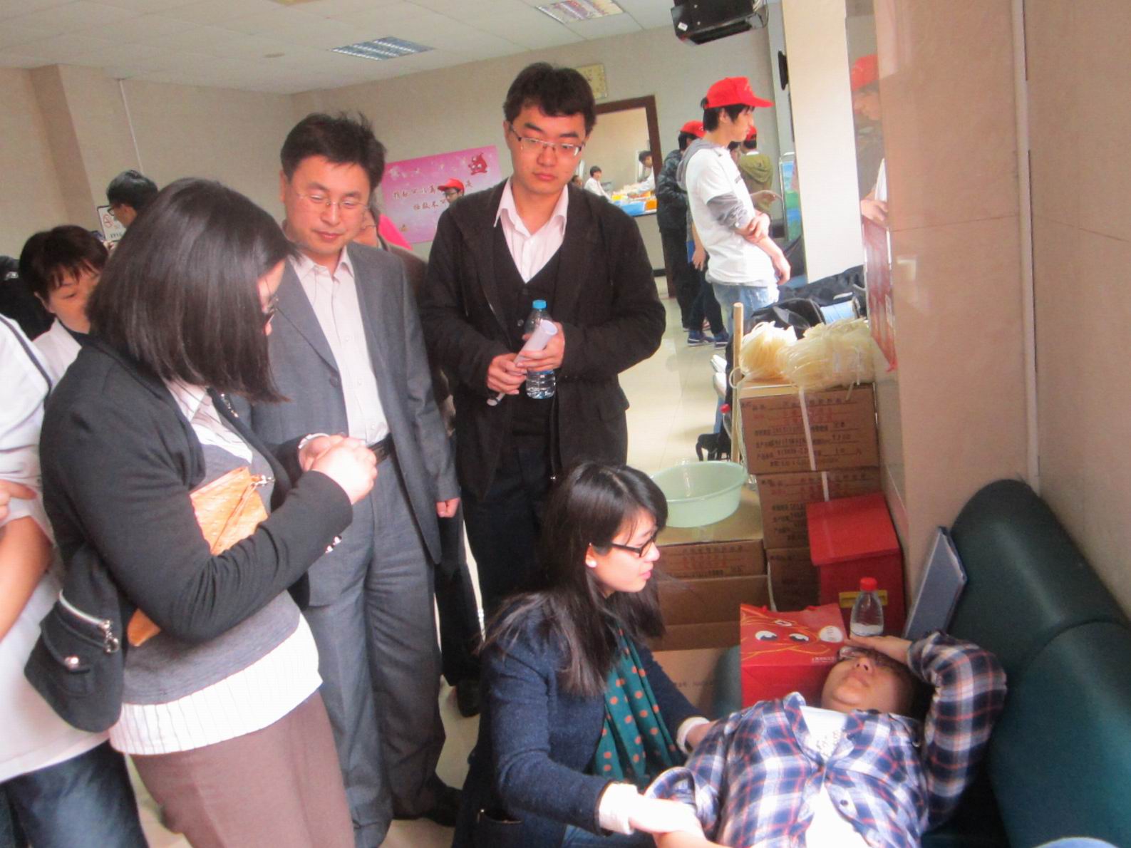 同学们纷纷挽起袖子,自告奋勇地为红十字血液中心献上鲜血,奉献出自己的一片爱心,他们中间既有年轻力壮的男生们,也有平时看见血都害怕的女生们,更有多次参加过献血活动的学姐学长们。在志愿者同学的精心指导和服务下,同学们有序排队进行献血,伸出自己的手臂,用他们的爱心无微不至地呵护着献血的同学们。