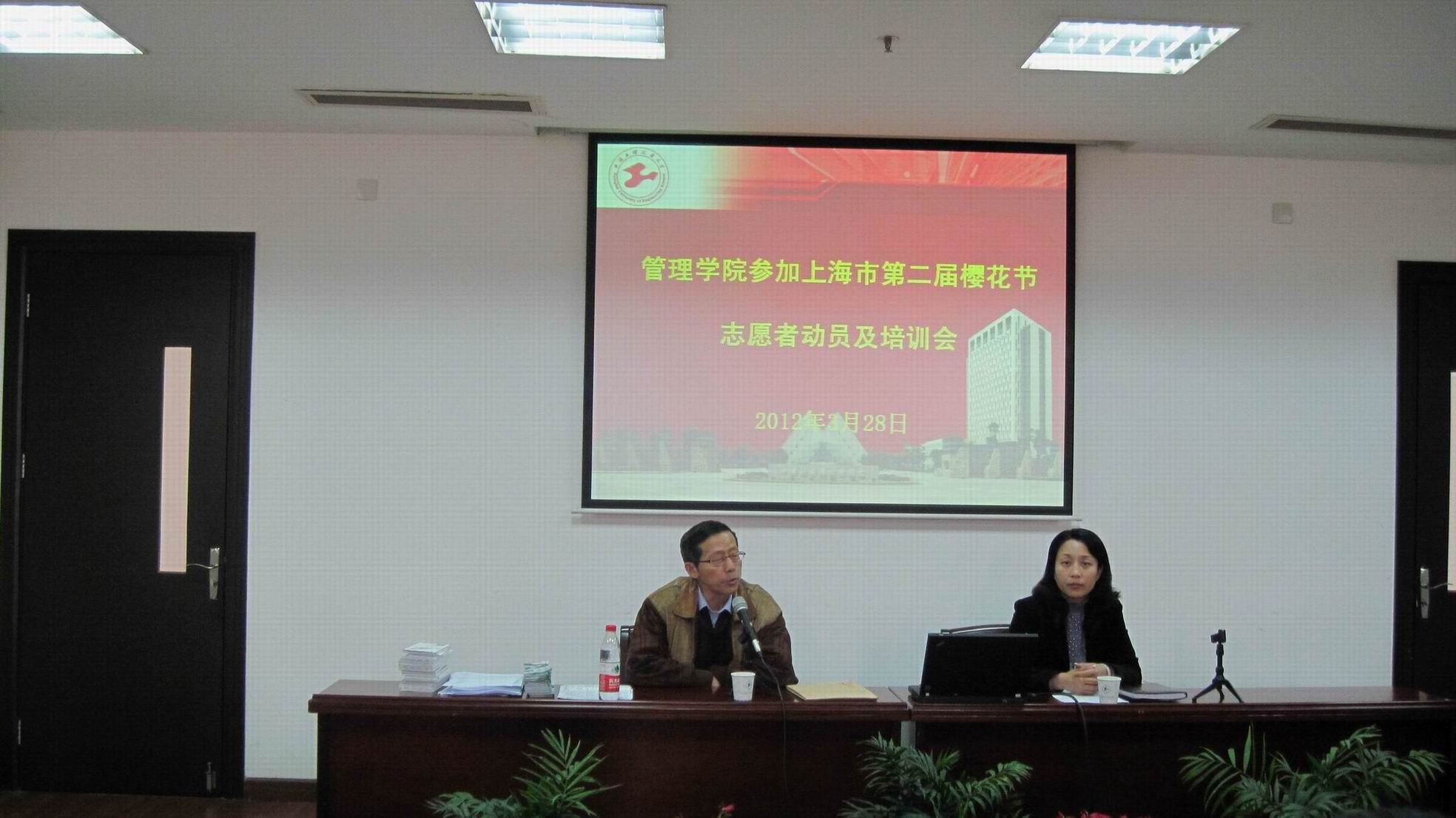 3月28日下午,管理学院在行政楼205举行了上海市第二届樱花节志愿者动员及上岗培训会,为同学们参加樱花节志愿者实践活动作准备。此次会议邀请到宝山旅游咨询服务中心的黄明生主任来进行培训,管理学院党委副书记虞蓉老师主持,辅导员金佳雯、徐佳老师及09级市场营销和邮轮经济专业的同学们参加了培训会。