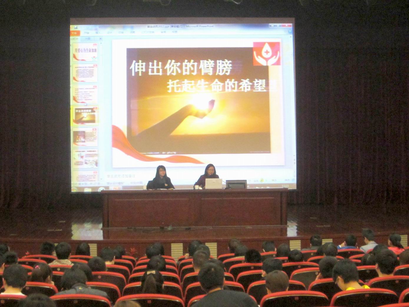 3月28日中午,汽车工程学院在图文信息中心志宏堂组织召开“用爱心为生命加油”2012年无偿献血动员会,汽车工程学院党总支副书记段海霞老师、辅导员潘爽老师以及汽车工程学院学生会副主席宋阳参加了本次动员会。
