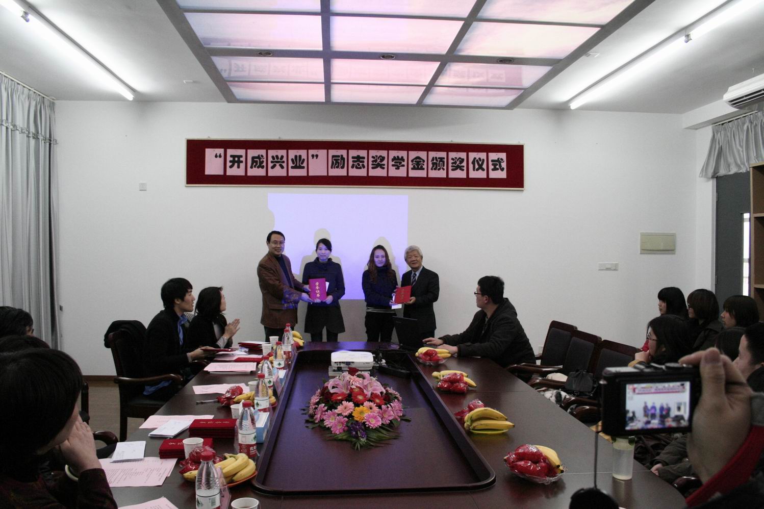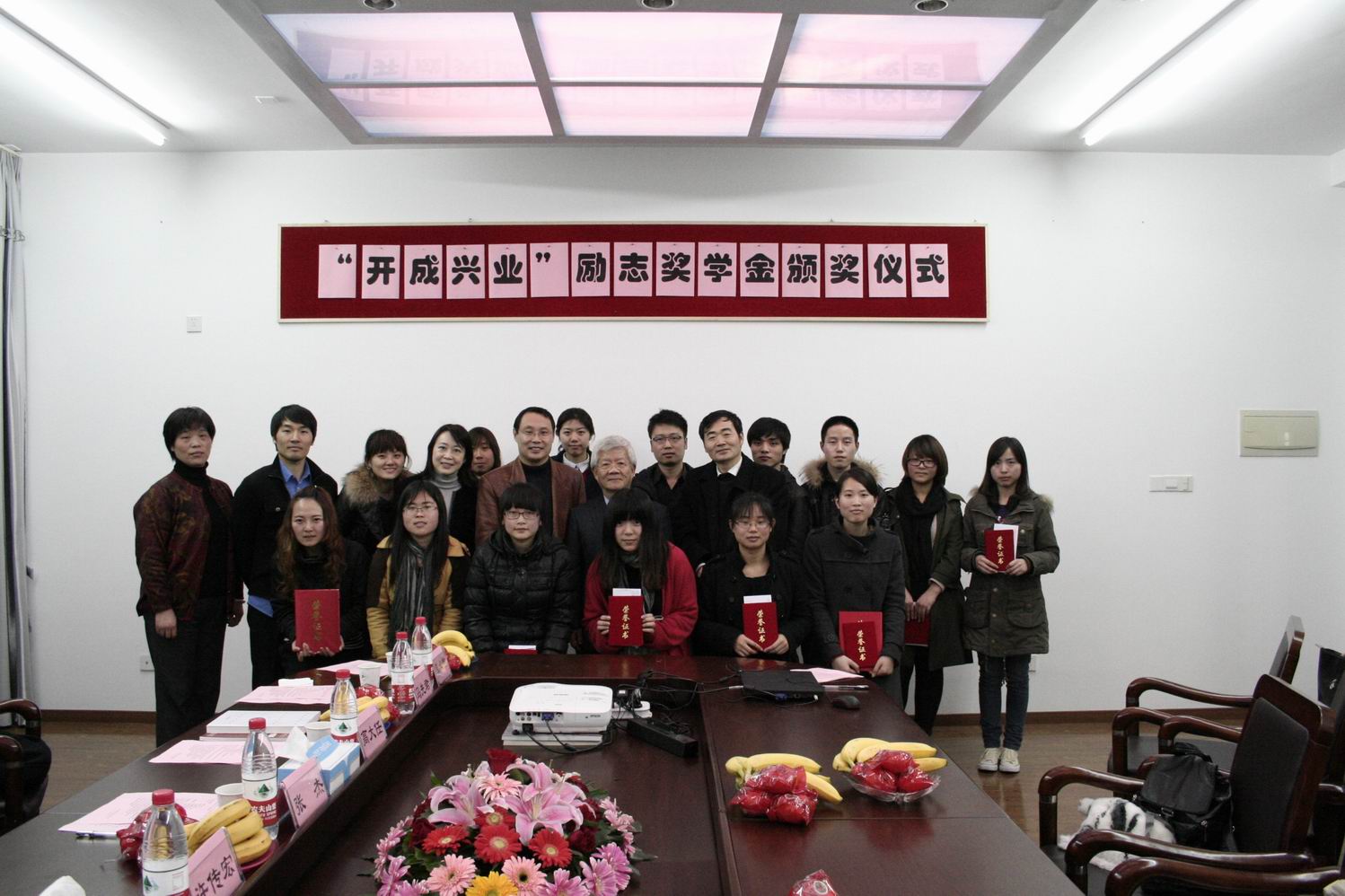 会上,何老师首先就2011年开成兴业励志奖学金的评审情况进行简明扼要的说明,接着0731091班蔡心漪同学代表获奖同学发言,对公司带给工程大学子的帮助和支持表示衷心的感谢,并代表同学们下定决心在今后的学习生活中,为回报社会和企业、学校和家庭而更加发奋学习。