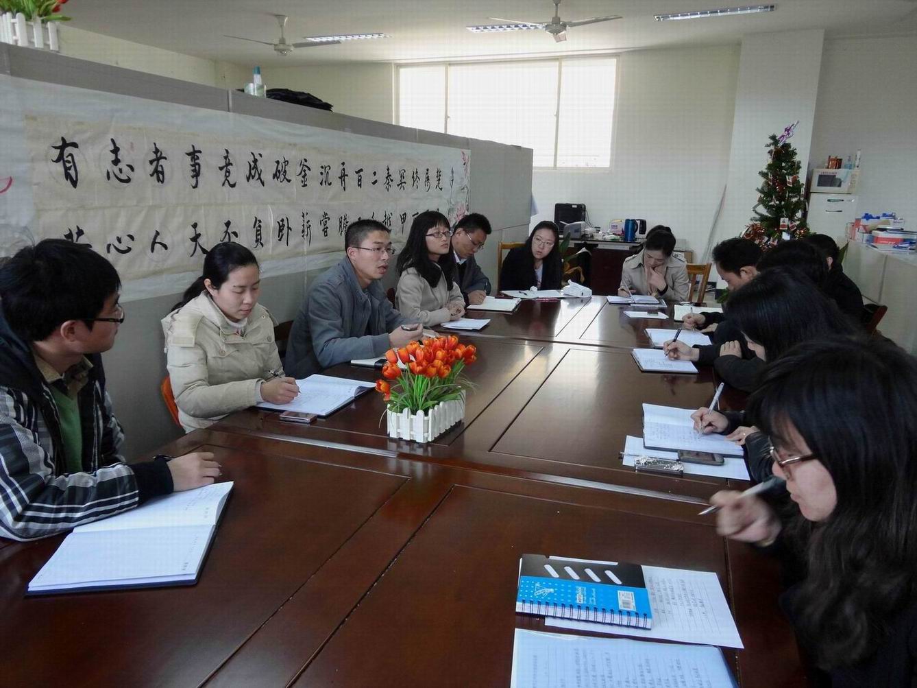 各位辅导员老师们也就自己的工作职责和工作中积累的认识和感想进行了畅谈,辅导员老师们通过思想的沟通和交流,并进行了总结。首先作为思想政治教师,应该准确定位自己的职责和身份,在学生成长的过程中应以服务、教育、管理、引导等方式来提升学生的自主能力,赋予学生更多锻炼和发展的平台。其次思想政治教师也需要提升自己的综合素质和人格魅力,培养和学生良好的关系,成为他们的良师益友。最后在学校十二五规划的发展下,加强文化建设的力量,通过硬实力与软实力提升,为学校的全面发展作出贡献。