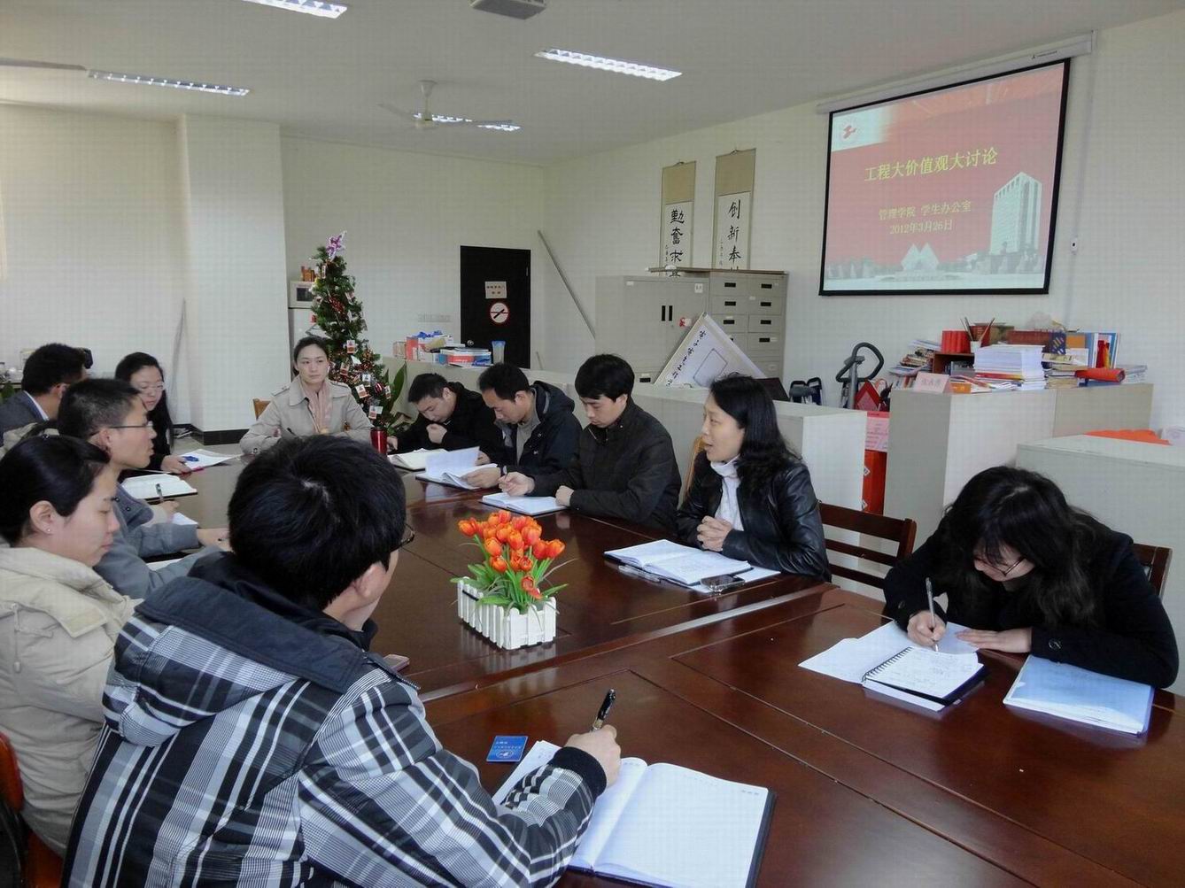 3月26日上午,随着我校核心价值观大讨论第二阶段的工作布置,管理学院学生工作办公室负责学生工作的老师们又一次进行了激烈的大讨论。本次讨论由管理学院党委副书记虞蓉老师主持,全体辅导员及兼职辅导员参加。通过讨论与学习,大家都表示应从思想上的认识转变为行动上的落实, 紧紧围绕学校的中心发展,以人为本做好本职工作。