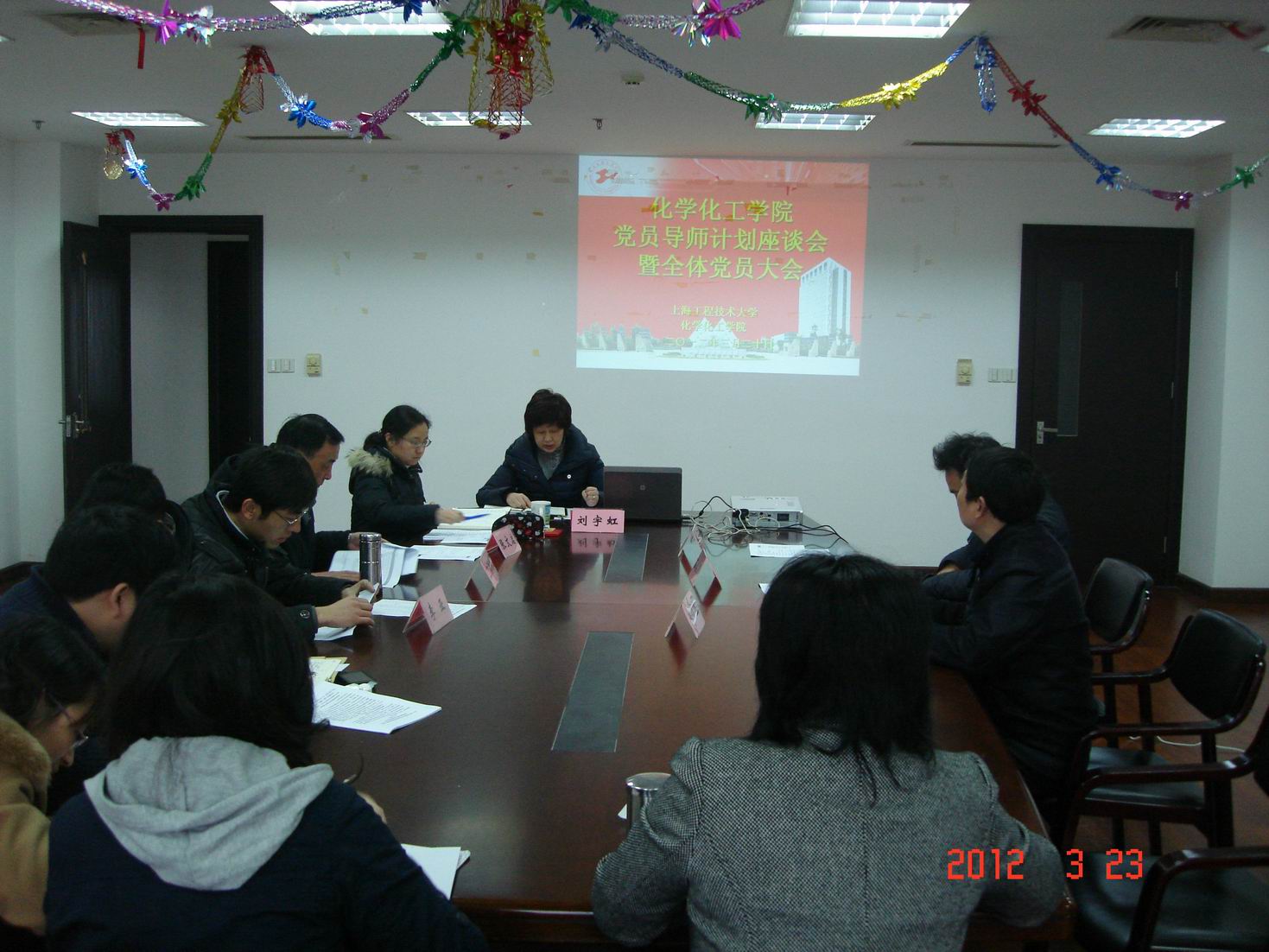 党总支书记刘宇虹向广大党员教师传达了校党委《关于上海工程技术大学在争先创优活动中深入开展基层组织建设年活动实施方案》的文件精神,并根据化学化工学院的实际情况从活动目标、方法步骤、具体做法和要求等方面做了详细的布置和安排。随后化学化工学院党总支副书记熊筱晶就我院党员导师计划的开展情况做了报告,党员导师们就制度规范、学生党建和带教学生过程中的问题展开讨论。