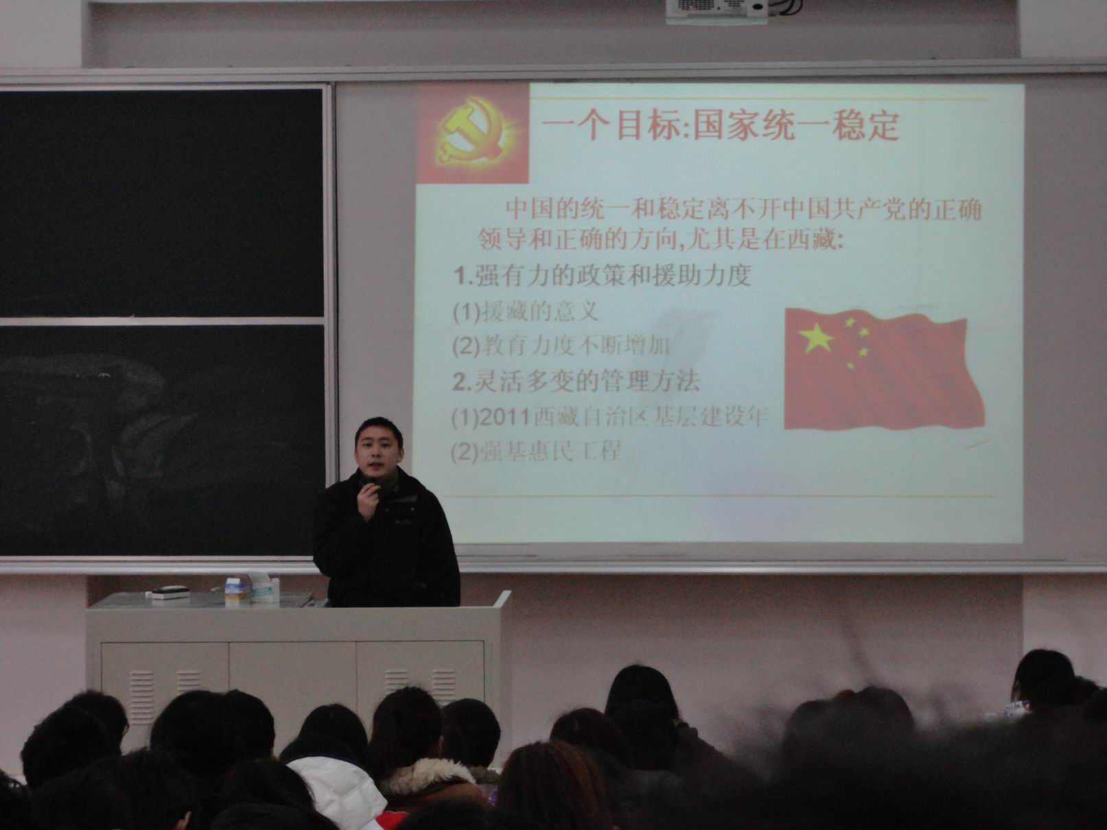 此次授课中周家��老师以自己在西藏的亲身经历为例,讲解了作为一名党员干部如何在实践工作发挥党员的先锋模范作用。周家��老师首先为大家介绍了自己在西藏工作的工作环境及工作内容,周老师通过下乡走访调研、红色纪念活动、成立志愿者协会服务百姓、举办青年文娱活动,组织管理学院开展向谢通门县团委中小学生捐书捐物活动等一系列具有意义的活动,受到了当地新闻媒体的关注和好评。