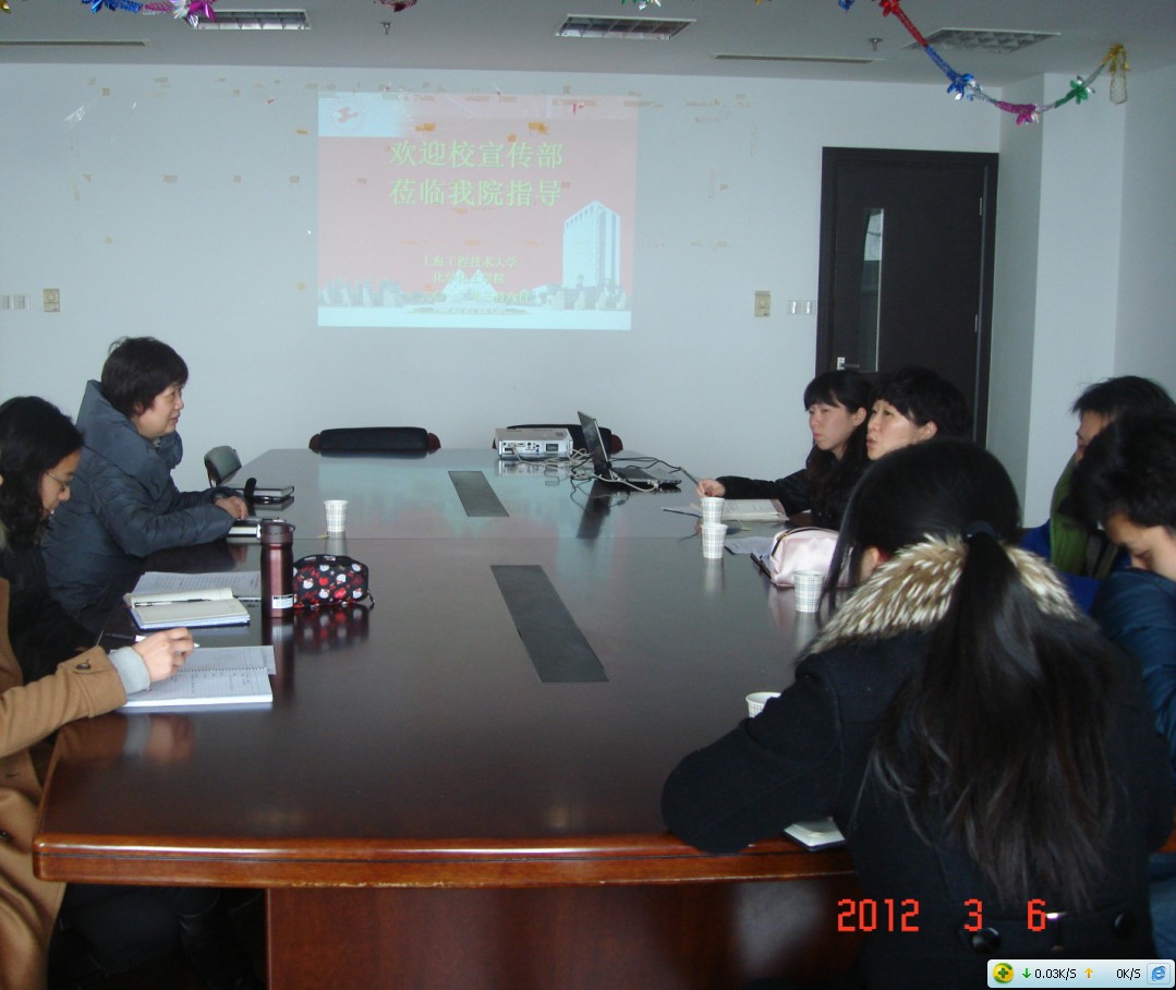 调研会上,王一川部长首先对化学化工学院的新闻宣传报道、精神文明网建设、橱窗宣传等工作予以肯定,并介绍了宣传部2012年度的工作重点,随后王部长对宣传部新闻办、环境宣传办、精神文明办等各块工作与学院进行了工作交流。随后,学院党总支书记刘宇虹介绍了化学化工学院在宣传工作、精神文明工作、环境宣传等工作的现状,介绍了学院在多元人才培养特色、学科团队建设、精神文明建设的几项重点工作。最后学院党总支书记刘宇虹代表化学化工学院表达了对宣传部以往对学院的工作支持,并希望在宣传部的指导下,进一步提高学院宣传工作的质量与水平,大力推进学院内涵建设。