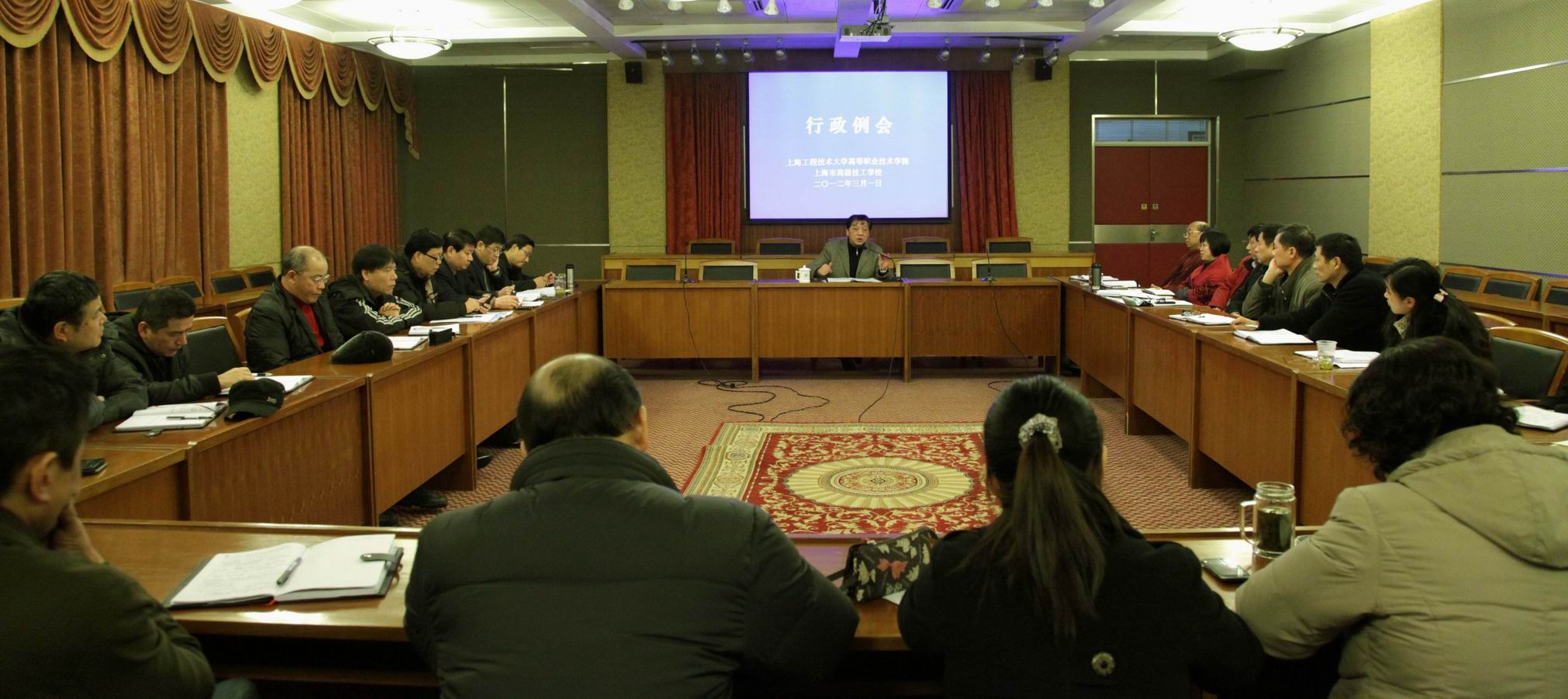 新学期伊始,高职学院于31召开了2012年度首次行政会议,研究部署新学期相关工作,以确保学院各项工作扎实有效地开展。高职学院刘启中院长、党委李军副书记、校财务处张志刚副处长、胡宁副院长、田盈耕副院长、许锦彪副院长出席会议。学院各系部负责人参会,会议由刘启中院长主持。