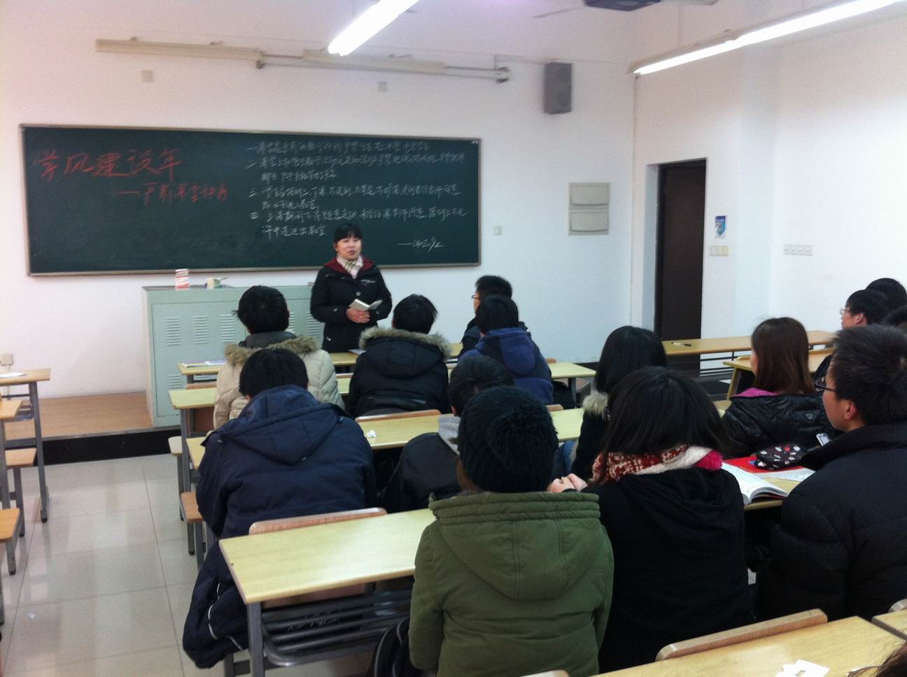 通过主题班会的召开,班导师严肃强调了学生课堂纪律的重要性,要求同学们必须认识到自己的身份以及在课堂求学的目的。许多班导师通过列举了一些目前同学们在课堂上存在的不良习惯和不恰当的行为,大部分同学们认识到了自身存在的弊病。