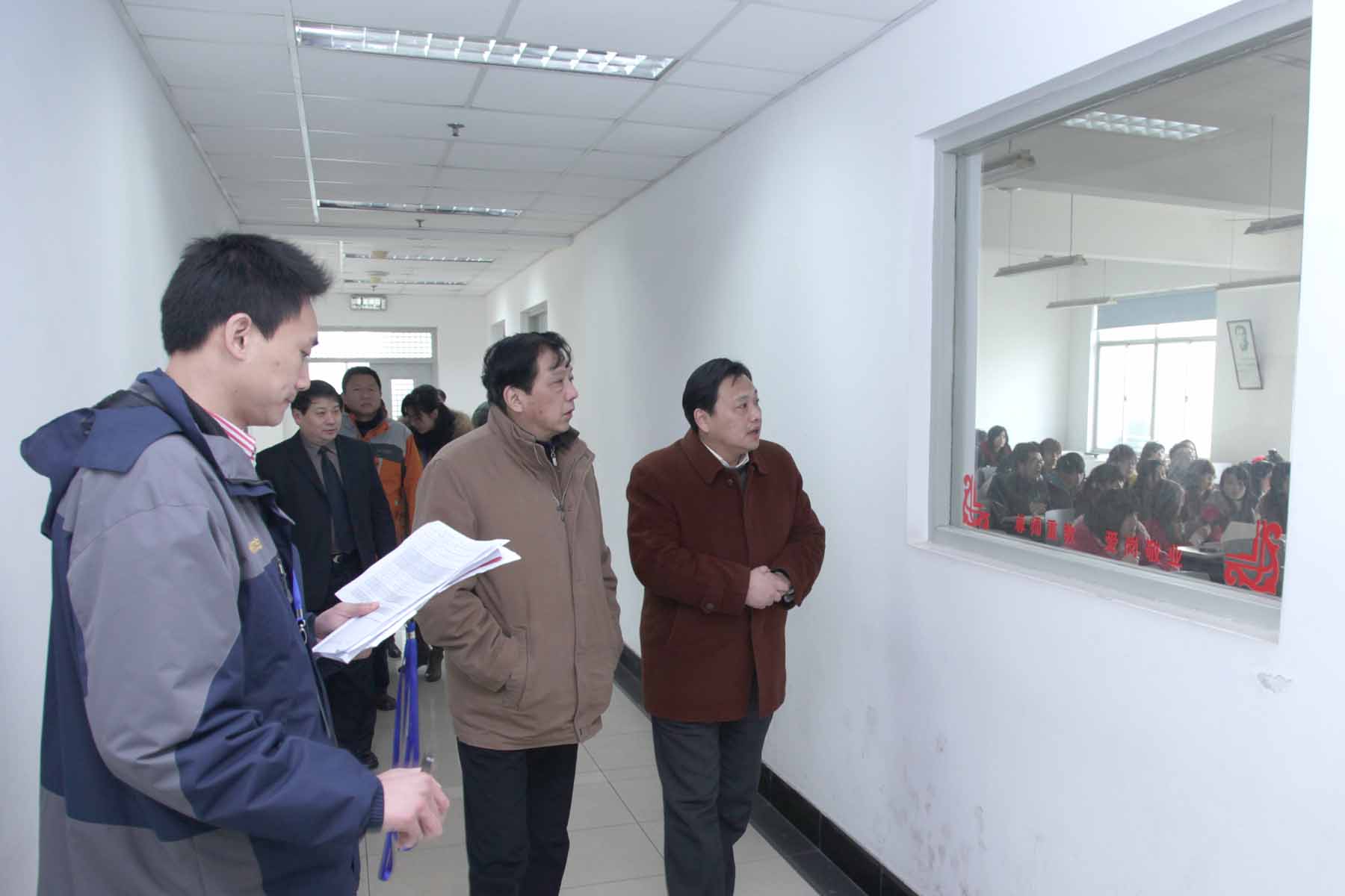 2月20日,新学期开课的第一天,史健勇副校长亲临高职学院检查指导工作,高职学院刘启中院长,院党委柳如荣书记、李军副书记,胡宁副院长、许锦彪副院长及教学科、三系一部的负责人陪同检查。
