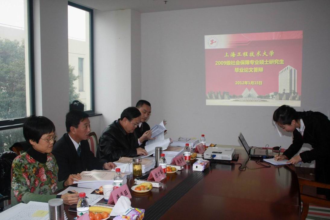 115日上午,我校2009级社会保障专业硕士研究生学位论文答辩会在行政楼306B204B206B207会议室拉开了帷幕。毕业论文答辩分4组同时进行,答辩委员会主席分别聘请了中国社会保险学会秘书长蒋德理教授、上海市人力资源和社会保障局鲍淡如教授、浙江大学米红教授、复旦大学潘肖珏教授担任,宝山区区长兼我校校长、社会保障学科带头人汪泓教授及全体社会保障学科研究生导师担任了答辩委员会成员,答辩还邀请了上实集团董事长滕一龙、虹口区副区长高香、上海市发改委巡视员浦再明、上海市120急救中心主任赵华强、岳阳医院主任医师黄平、宝山区人力资源和社会保障局局长赵婧含、宝山区旅游局局长阎丽伦等担任答辩专家。管理学院全体研究生共同参加、观摩了此次答辩会。