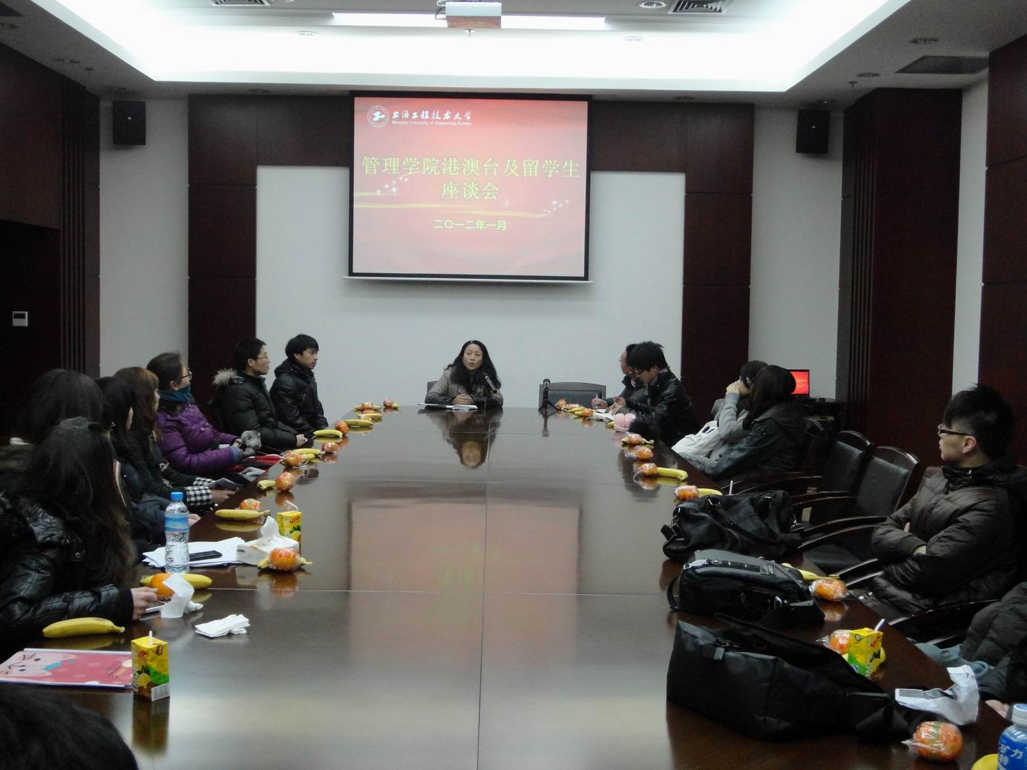 1月5日下午,管理学院在图文信息中心第五报告厅召开了港澳台、留学生座谈会,会议由管理学院党委副书记虞蓉老师主持,参加会议的有国际交流处代表李从、管理学院辅导员史志军、李柳维娜、白玉新、吉祥等以及管理学院港澳台、留学生代表30余名。