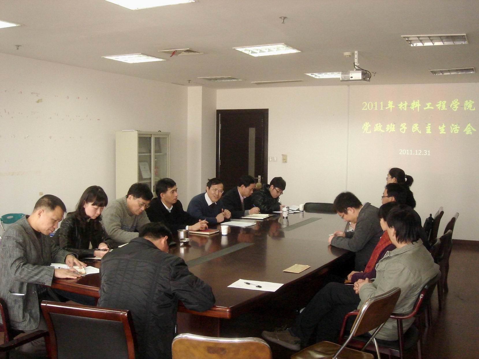 12月31日下午,材料工程学院在行政楼1612室召开2011年党政领导班子民主生活会,会议主题是《以人为本,执政为民,密切联系群众,改进工作作风》,校党委书记滕建勇、组织部王勤参加。学院党总支书记徐国祥主持会议。