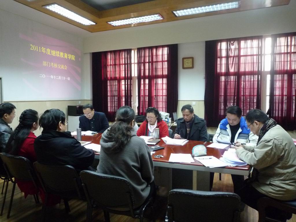 12月31日上午,继续教育学院召开了部门年终总结交流会,学院党政领导、各部门负责人以及由各部门职工代表组成的学院考核小组成员参加了会议。