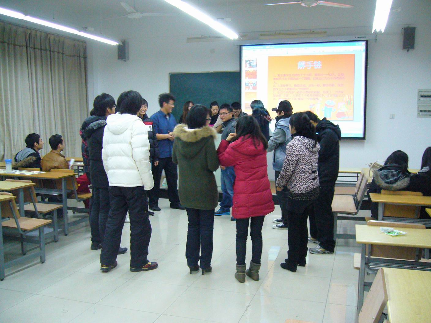 12月27日晚,服装学院分团委学生会在教学楼E303举办了由全体学生会成员参与的素质拓展活动。这次年终活动由学生会干事精心筹备,服装学院辅导员沈智莉老师也参与了本次活动。