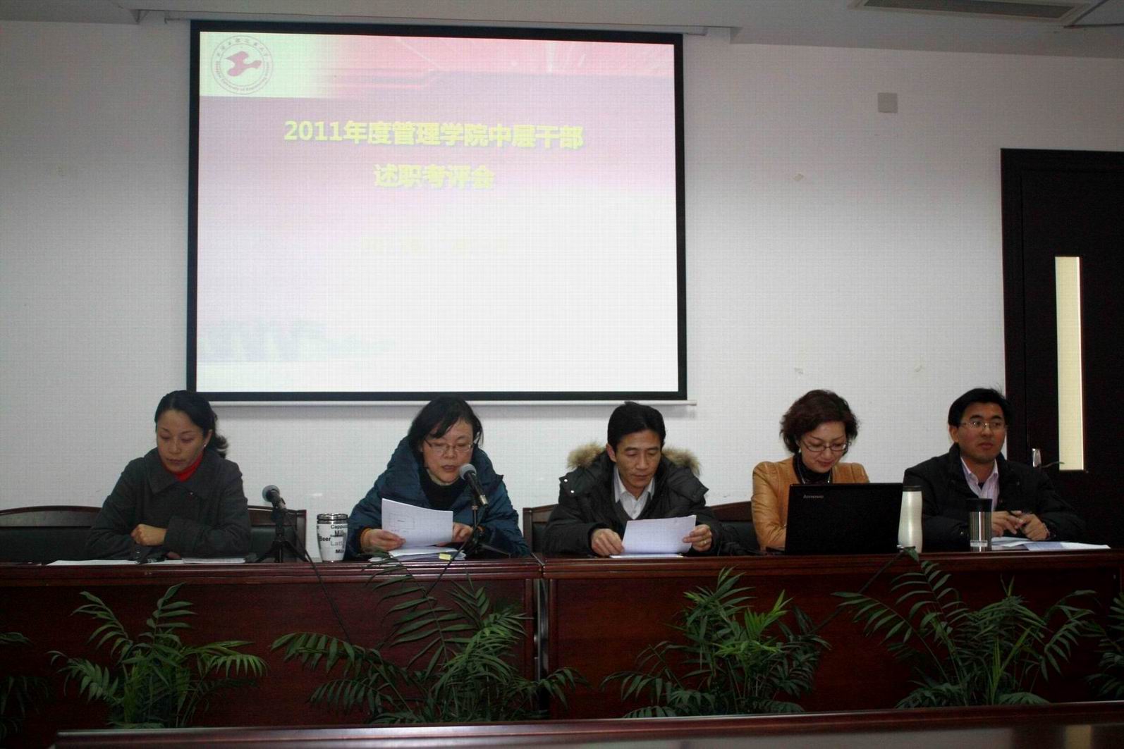 223下午1330,管理学院在行政楼205会议室召开2011年度中层干部述职考评会。校党委组织部部长张伟林老师,管理学院党政领导,党委委员,各系(室)负责人和支部书记、工会小组长、院教代会代表等近四十人参加了考评会。会议由管理学院党委书记吴清老师主持。
