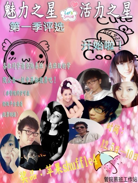 为丰富同学课余生活、推广易班网络平台,管理学院易班工作站从1214-21日,在上海市易班平台及校易班平台举办了为期八天的管理学院“魅力之星与活力之星”评选活动。