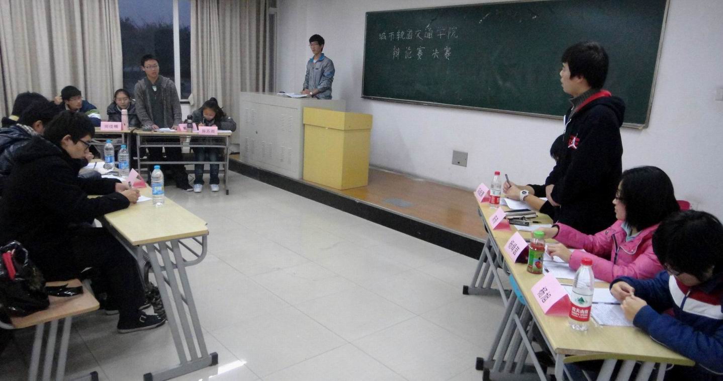 1221日下午16:30,由城市轨道交通学院学术部举办的辩论赛决赛在教学楼E107如期举行。