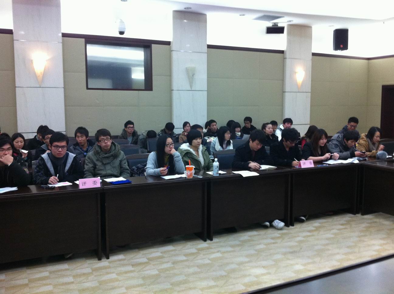 12月21日17:30,管理学院分团委及学生会2011-2012学年第二学期活动招标会在图文信息中心第三报告厅举行。管理学院分团委书记金佳雯、管理学院分团委学生会主席团的各位成员出席此次招标会并担任评委,同时有数名学生代表出席同时担任评委为各部门的策划评分。各部门部长及部分部门成员也都到场。