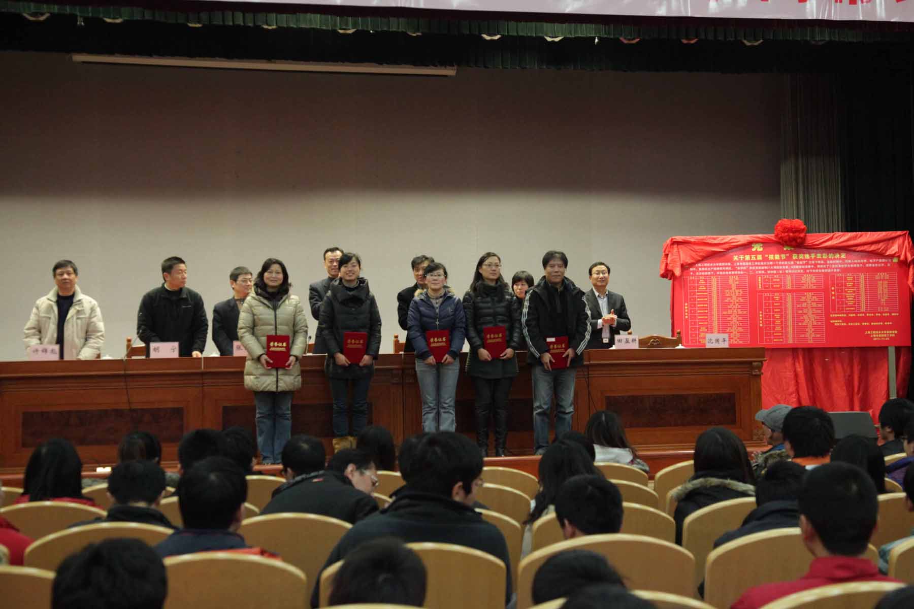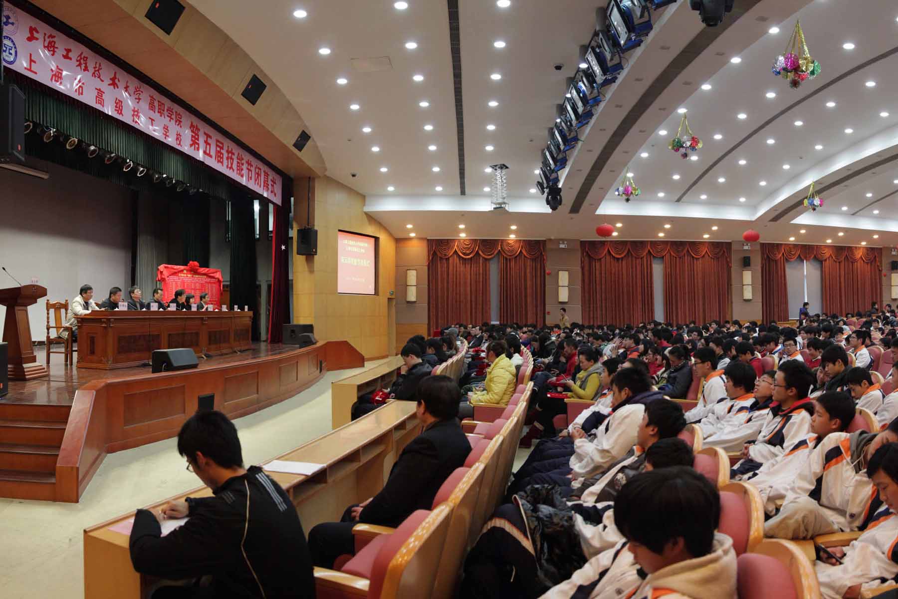1219下午,历时两个月的高职学院第五届技能节落下了帷幕,在师生活动中心四楼涵憬堂隆重举行了以“崇尚技能、超越自我”为主题的上海工程技术大学高等职业技术学院、上海市高级技工学校第五届技能节的闭幕式,高职学院院长刘启中、党委书记柳如荣、党委副书记李军、财务总监张志刚、副院长胡宁、田盈耕、许锦彪等学院领导、部分教师和学生以及企业代表参加了闭幕式。