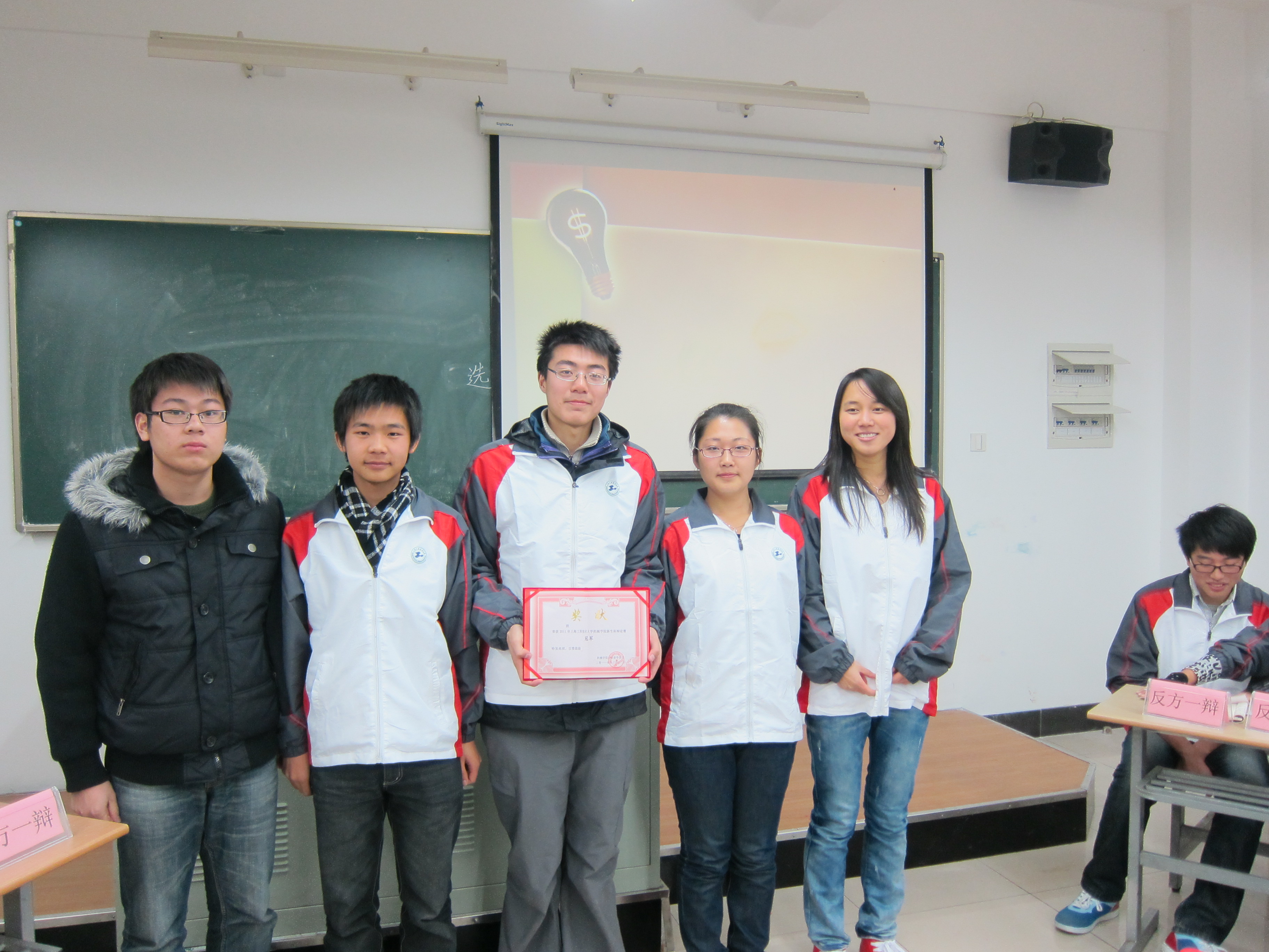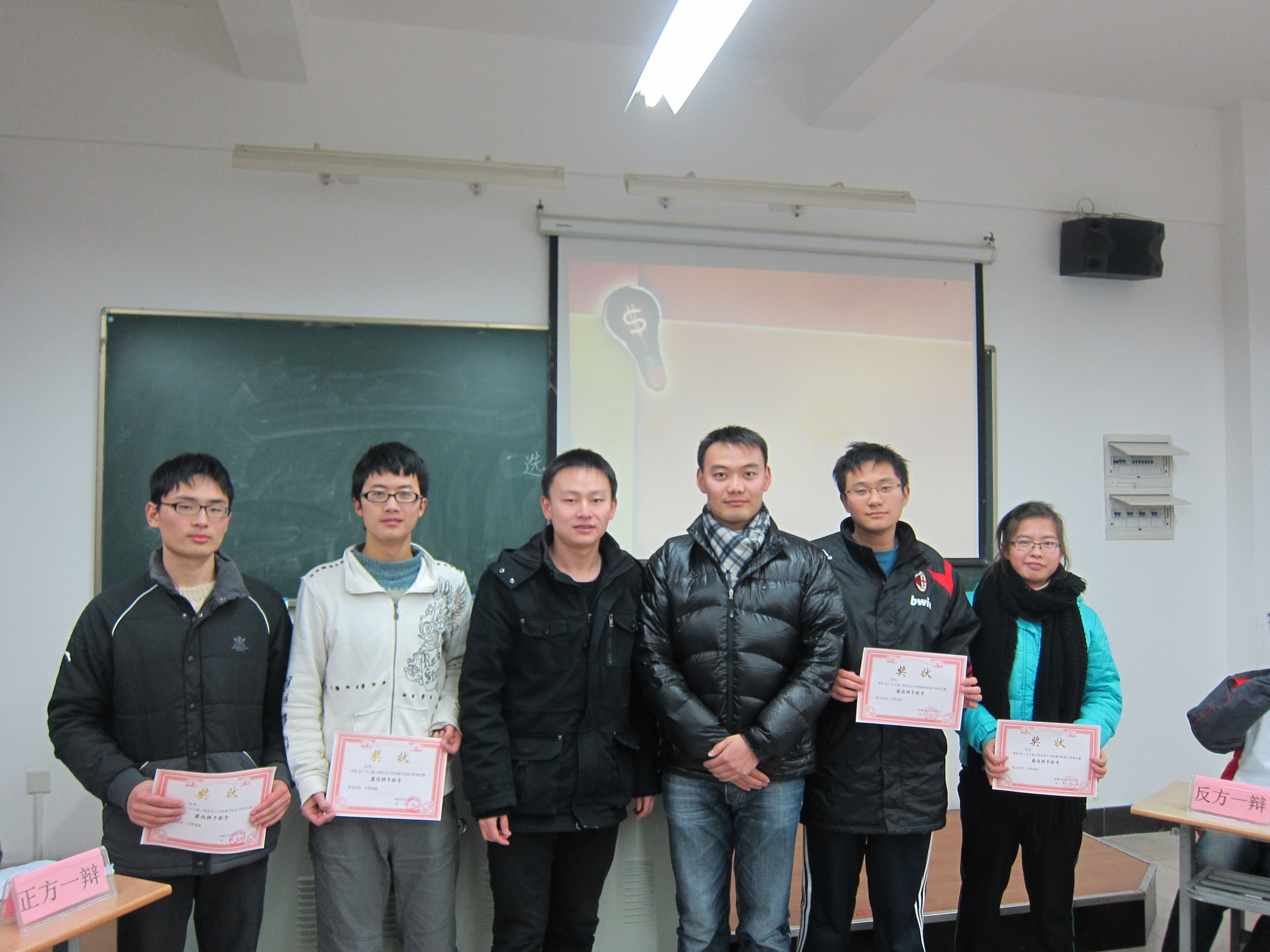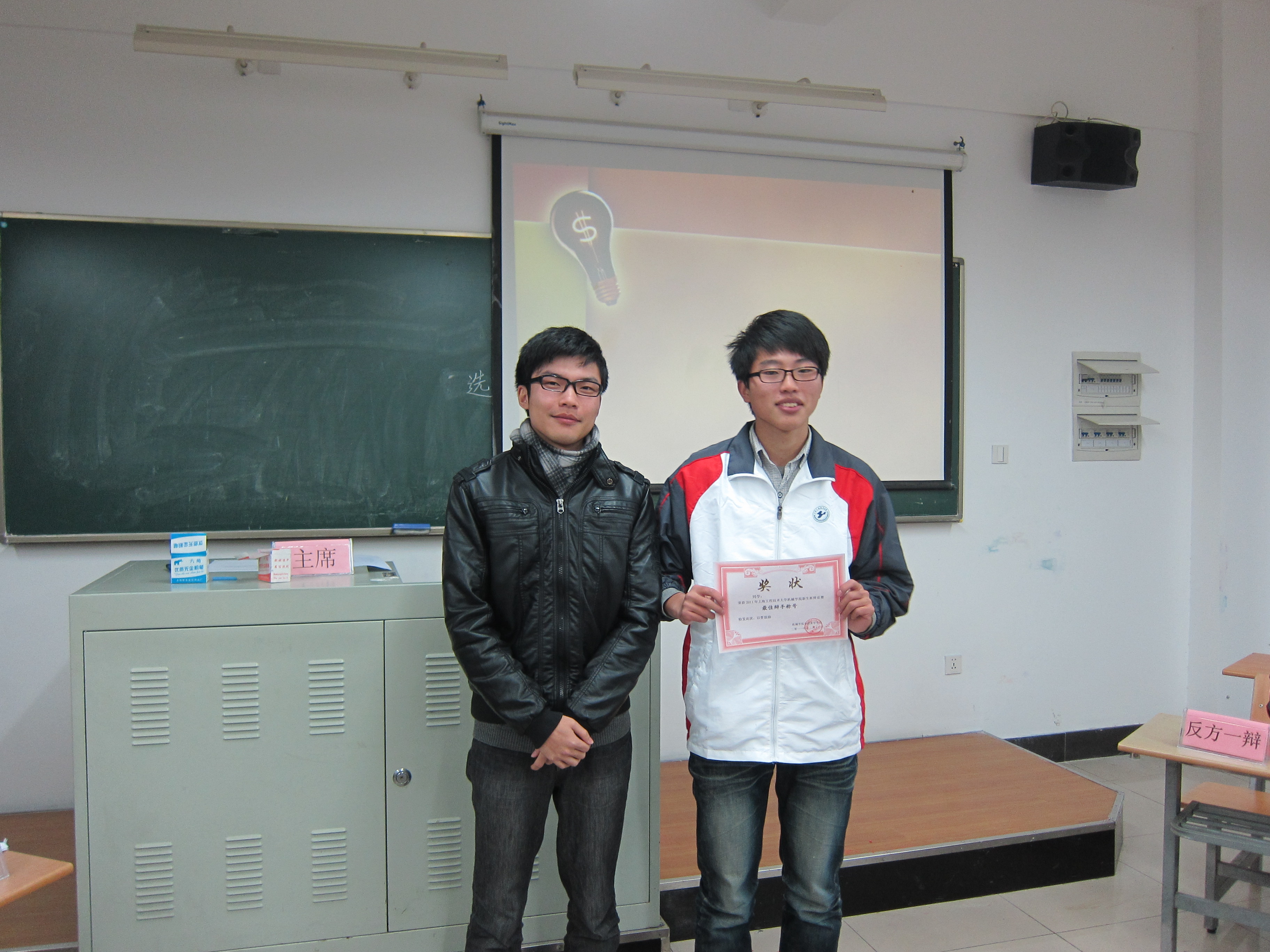 激动人心的辩论在观众的掌声中落下帷幕,裁判分别对双方做出点评,客观公正的点评令辩手们心服口服。最后,裁判宣布正方胜出,并把最佳辩手的荣誉颁给了反方一辩。评委给本次辩论赛的冠亚军及预赛半决赛中的最佳辩手颁奖并与他们合影留念,一场激动人心的辩论赛至此结束了。