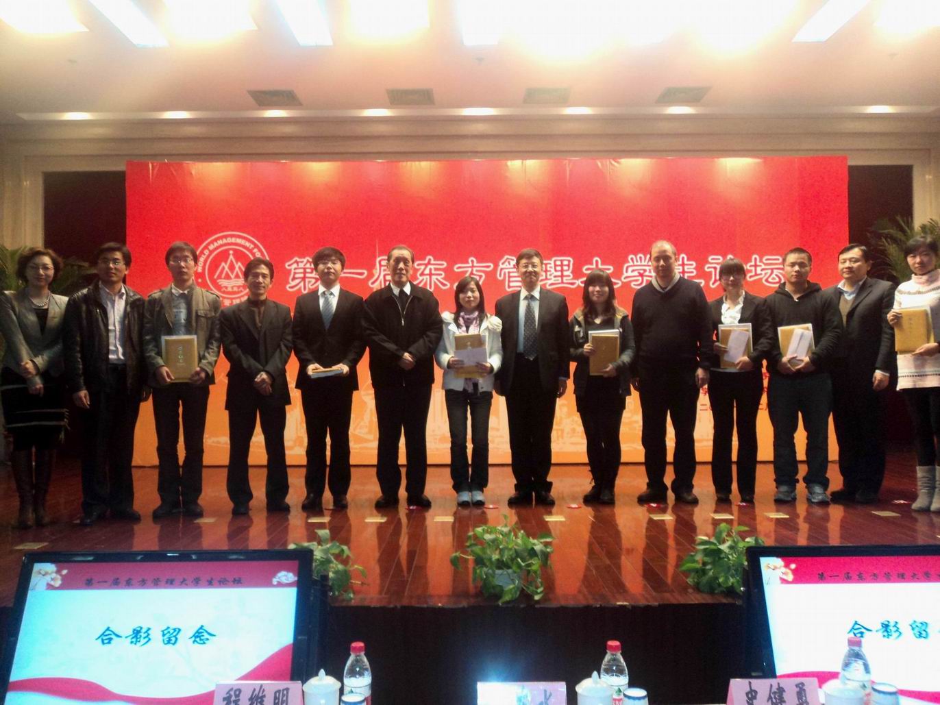 127下午,上海工程技术大学东方管理研究中心与上海外国语大学东方管理研究中心在图文信息中心第二报告厅联合举办了第一届“东方管理大学生论坛”。复旦大学首席教授苏东水,上海工程技术大学副校长程维明,校办主任史健勇,社会科学学院院长张健明,管理学院常务副院长吴忠,副院长邱羚、胡斌,管理学院党委副书记虞蓉等出席了本次论坛交流会。管理学院东方管理专业和人力资源专业的同学也积极参加了本次活动。