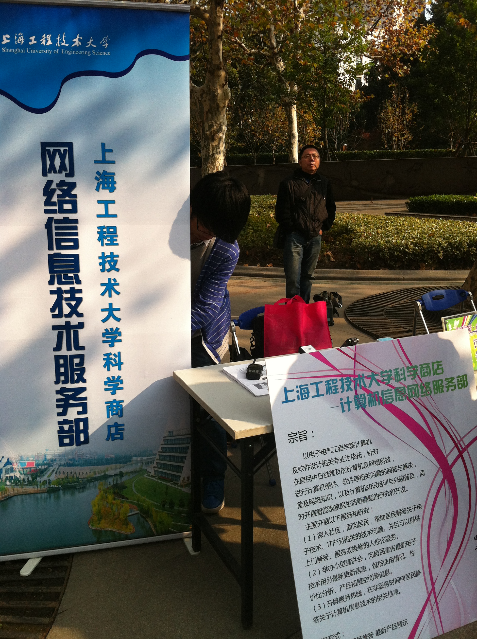 当天活动现场人头攒动,电子电气工程学院的志愿者们细心介绍居民关心的计算机软硬件、网络信息技术和最新的居家生活的高科技产品的使用等问题。我校其他学院的志愿者们也为居民带来了先进实用的污水处理装置,宣传汽车环保节能理念及家庭影像技术、家庭空气检测、服装面料测试等有关知识。一同参加志愿行动的上海交通大学医学院的志愿者为居民做了健康咨询,并义务提供血糖测试、太极体验等服务。来自区红十字会的志愿者向居民宣传骨髓捐赠知识,并在现场接受捐赠报名。